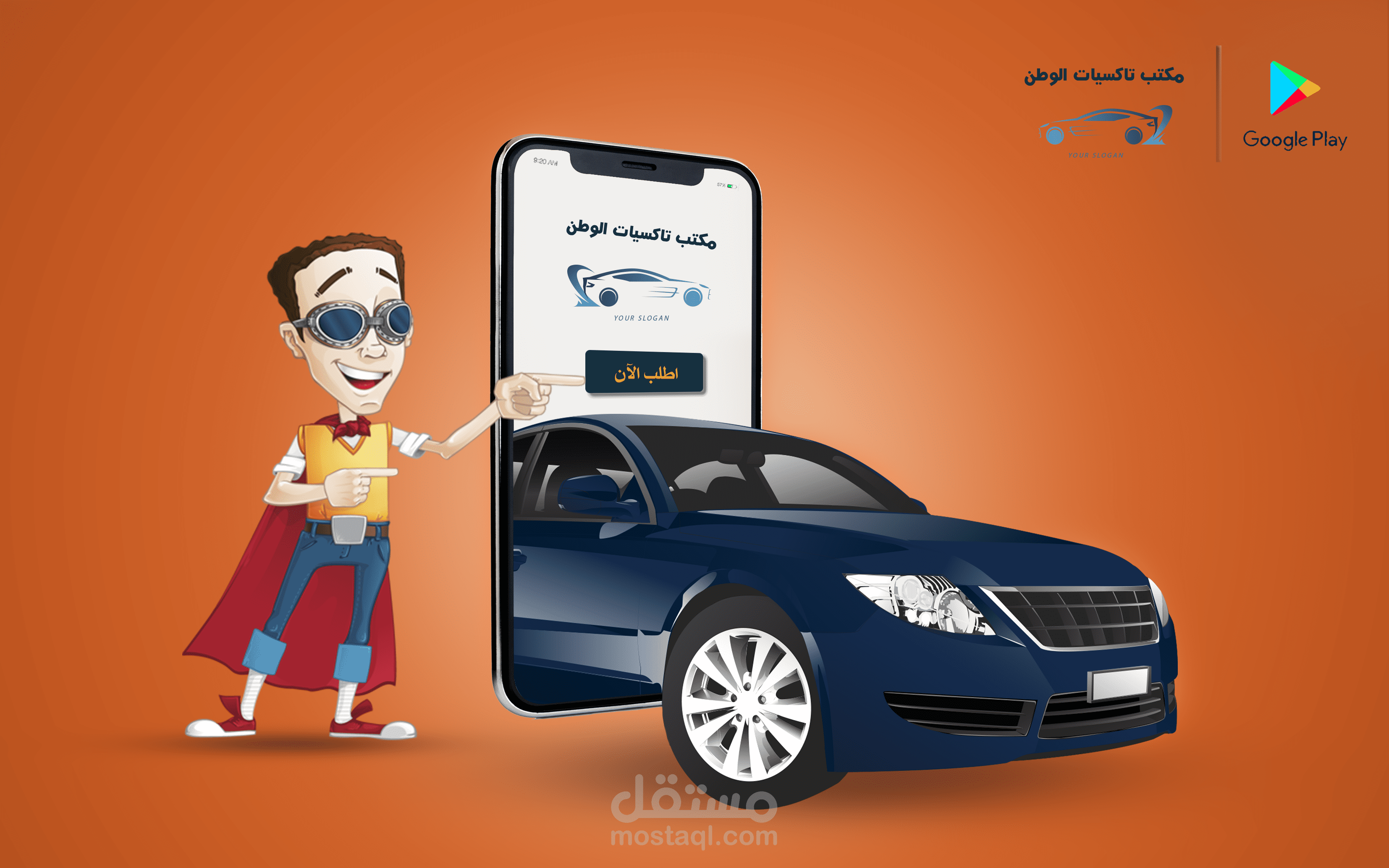 تصميم اعلان لفكرة عمل تطبيق على جوال لمكتب سيارات