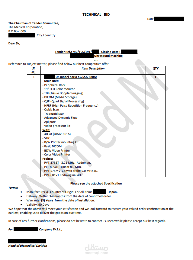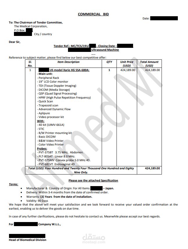 Tender - Commercial BID & Technical BID