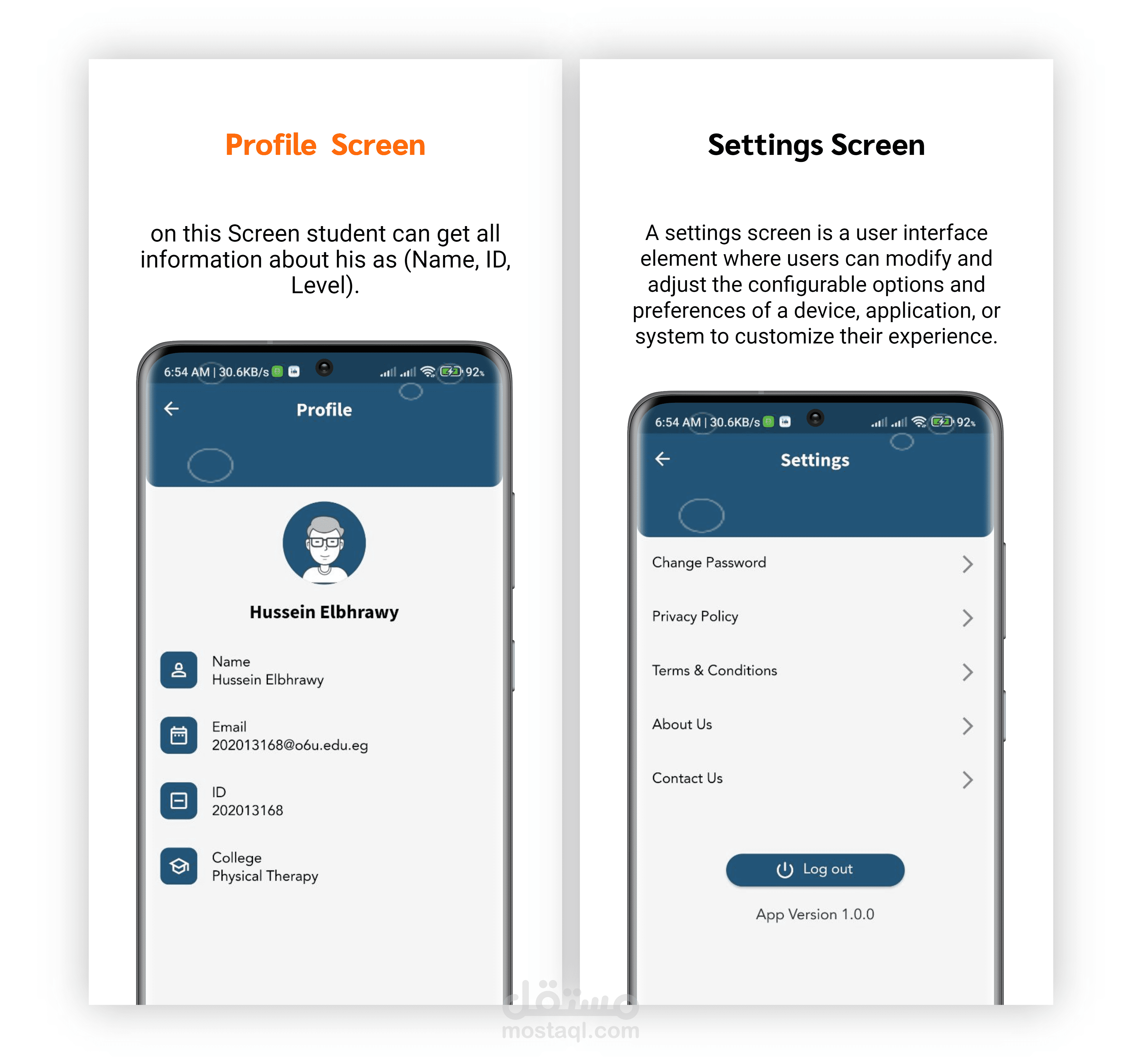 لقد قمنا بتطوير تطبيق احترافي لمنصتي Android و iOS يمكّن الطلاب من تسجيل حضورهم بسهولة، والوصول إلى مواد الدورات الخاصة بهم، والبقاء على اطّلاع بالإعلانات الهامة. يعمل التطبيق كمنصة شاملة حيث يمكن تسجيل الطلاب والأساتذة والدورات فيه. من خلال هذا التطبيق، يمكن للطلاب تسجيل حضورهم لأي محاضرة بسهولة من خلال خدمات الموقع التي تحدد موقعهم بدقة. يمكن للأساتذة أيضًا مراقبة الحضور وإنشاء أوراق Excel لأغراض الحفظ. بالإضافة إلى ذلك، يتيح التطبيق للطلاب عرض دوراتهم المعينة والوصول إلى المواد المتعلقة بهذه الدورات وتلقي الإشعارات في الوقت المناسب من إدارة الجامعة أو الكلية. تم تصميم مشروعنا بسهولة الاستخدام في الاعتبار، ويوفر واجهة مستخدم سهلة الاستخدام وميزات بديهية لتعزيز تجربة المستخدم العامة. تم تطوير التطبيق نفسه باستخدام إطار العمل Flutter. بالإضافة إلى ذلك، قمنا أيضًا بتطوير لوحة إدارة باستخدام Flutter Web، مما يتيح لنا إدارة النظام بأكمله.