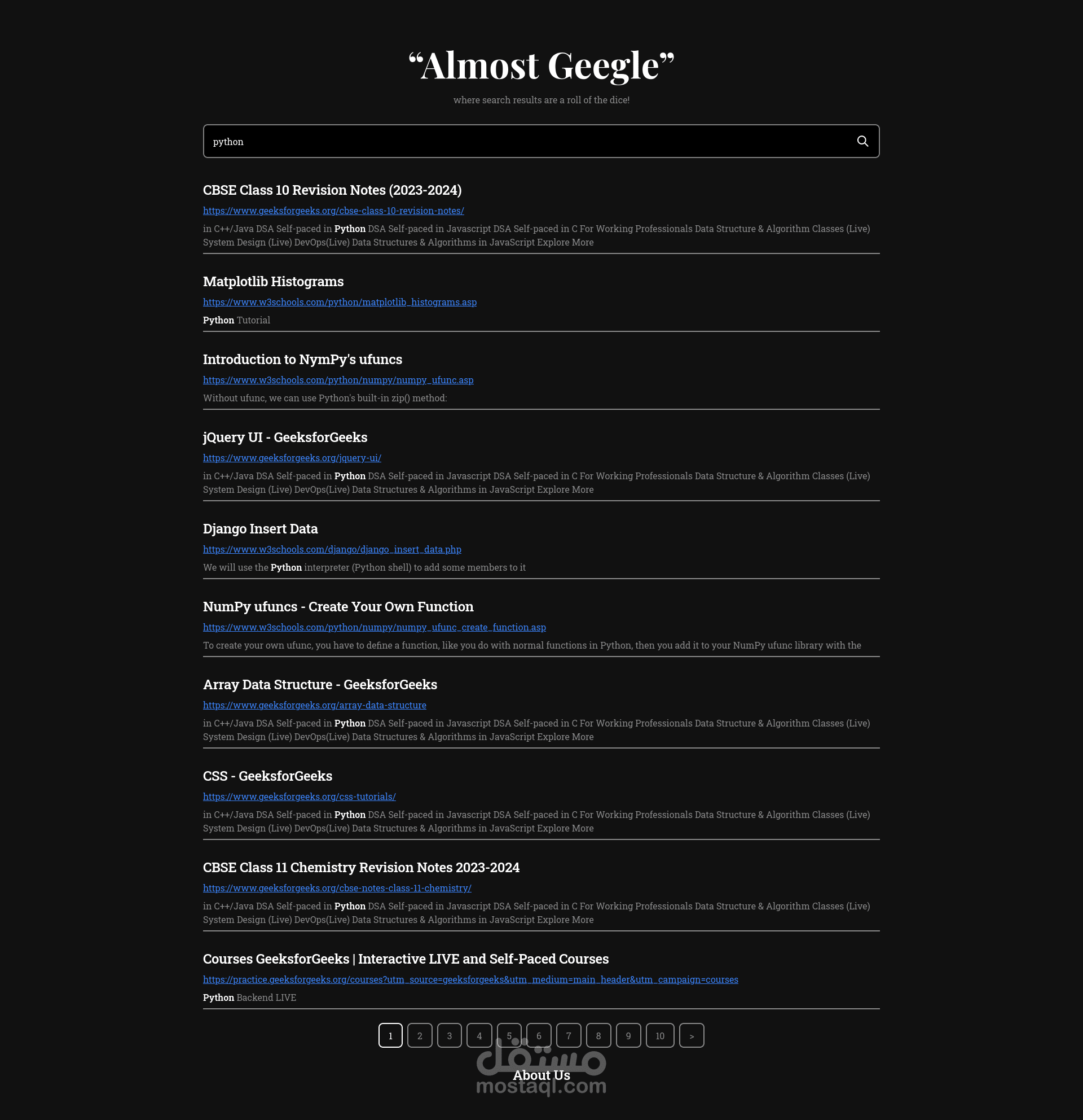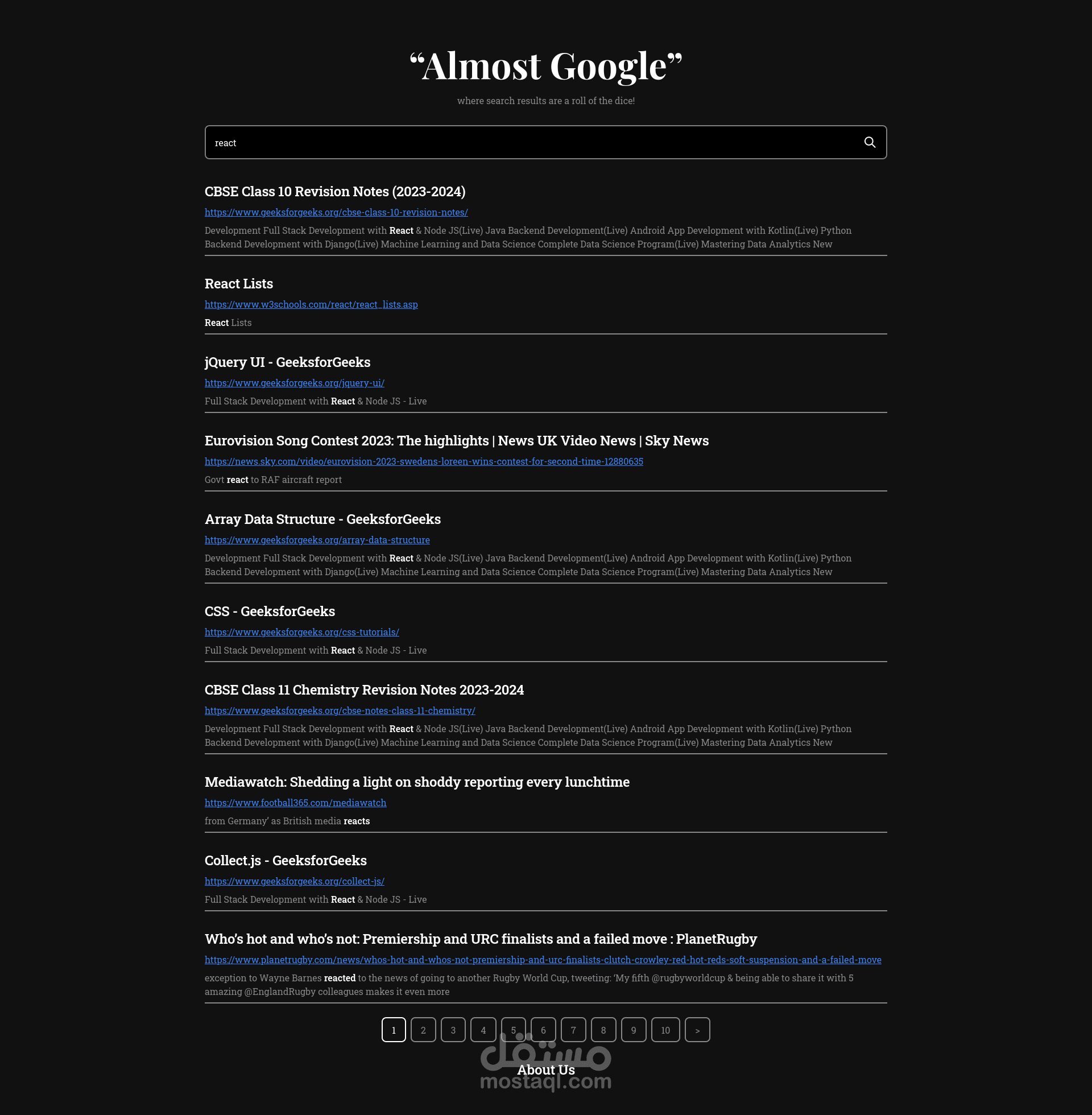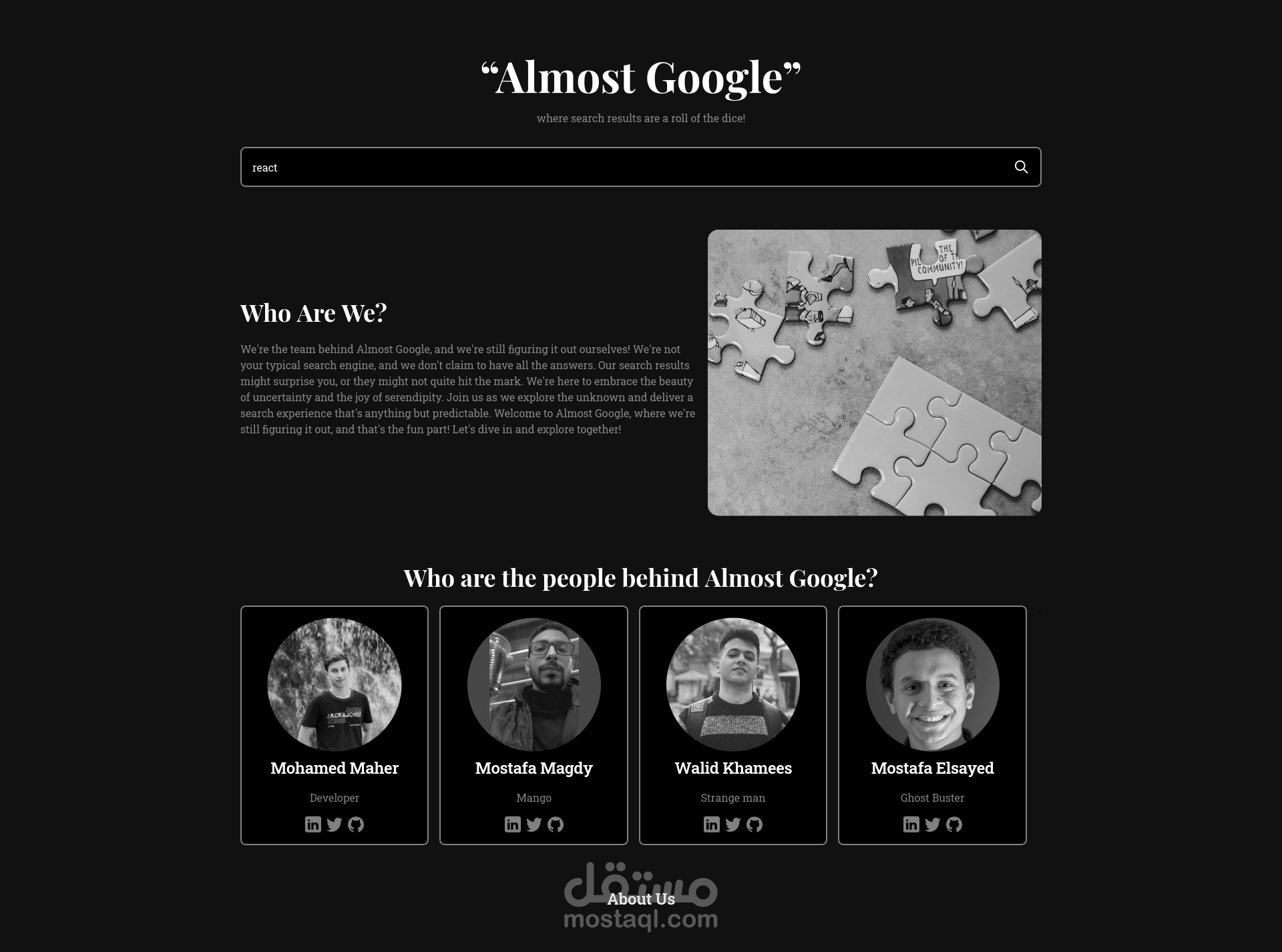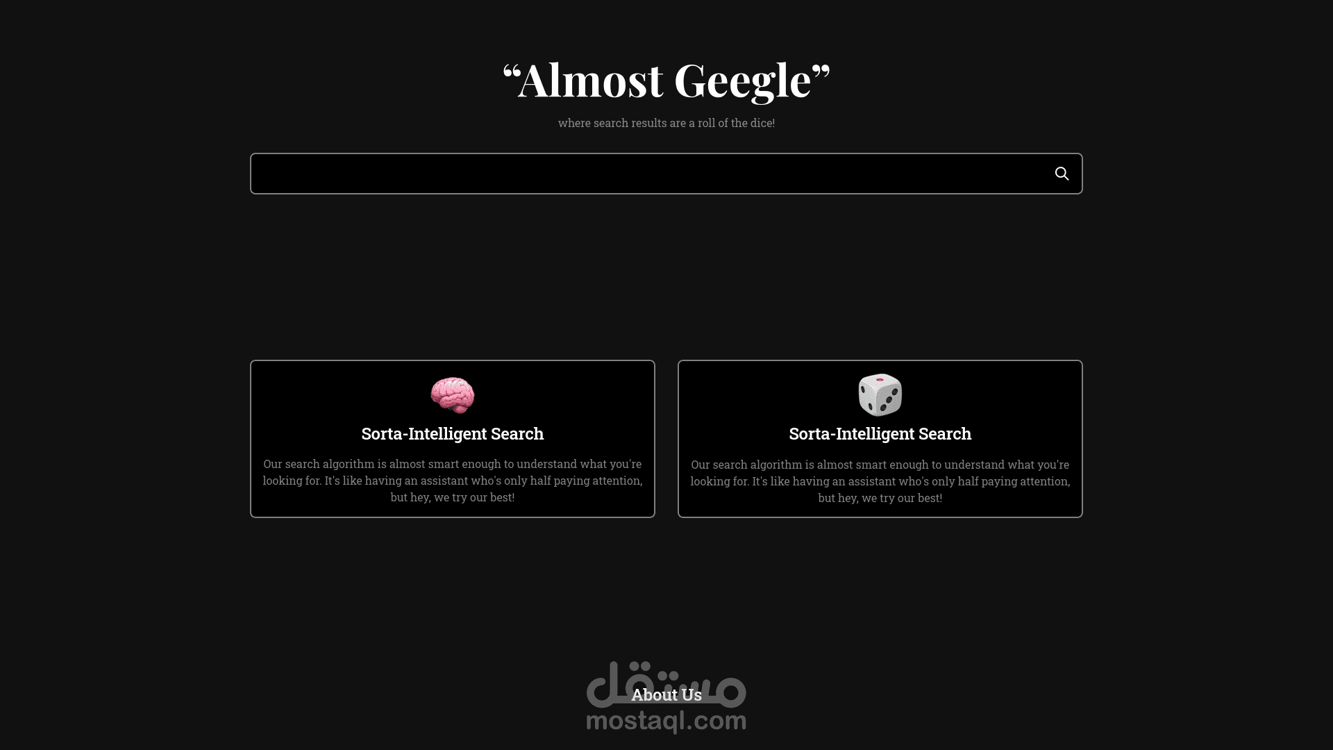 Almost Google is a search engine project developed as a university project. It aims to be the antithesis to Google, embodying uncertainty and a lack of confidence in its abilities.