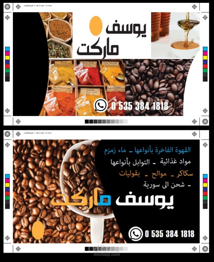 business cards قمت بتسلم الملف لصاحب العمل بدون شعار ، تم التصميم على حسب الطلب الكرت مخصص لمحل تجاري خاص ببيع القهوة بشكل اساسي وبعض المواد الغذائية ، تم استخدام اللغة التركية.
