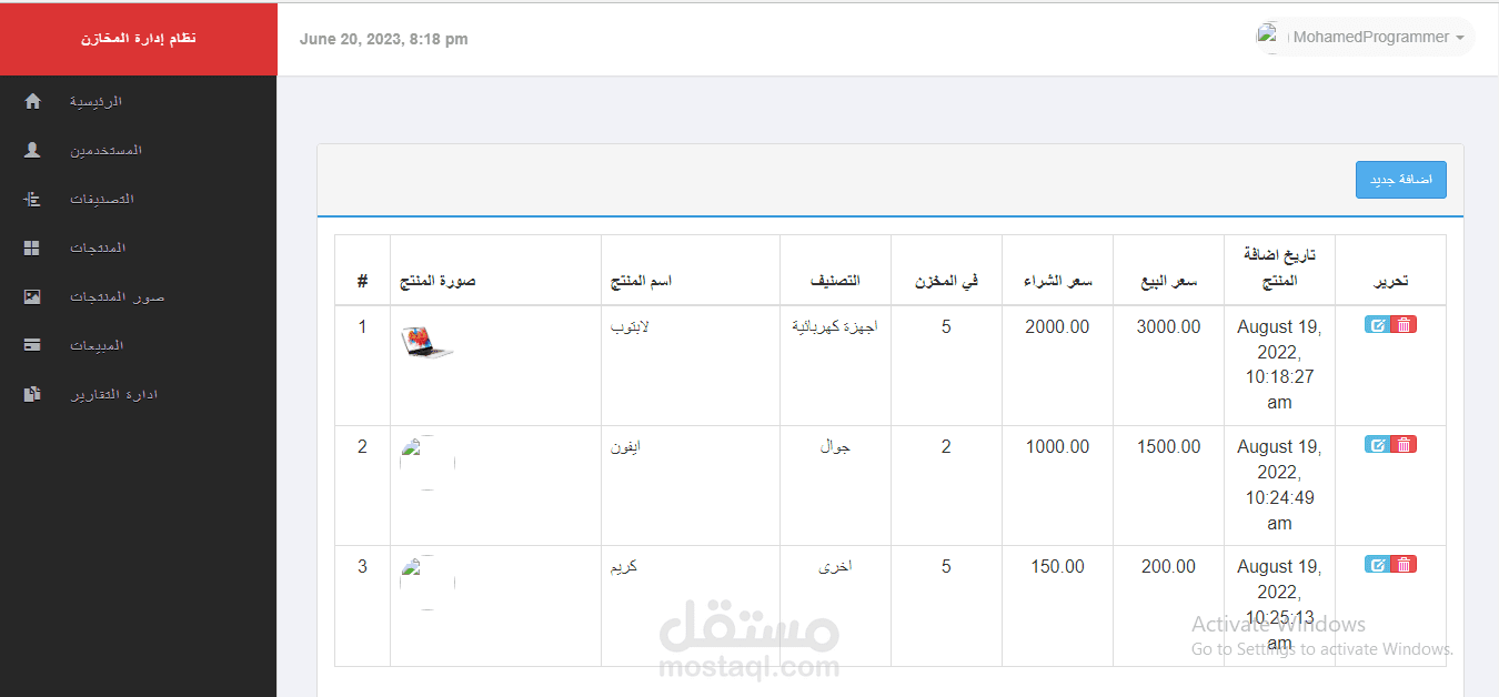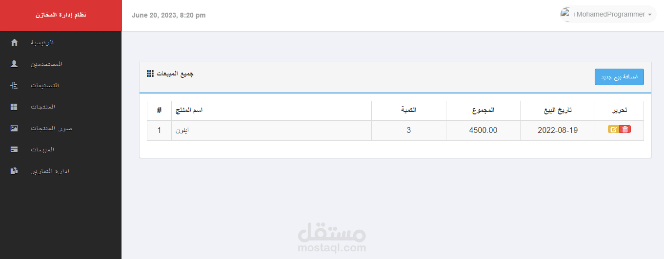 *اضافة وحذف عمليات البيع من المنتجات المخزونة