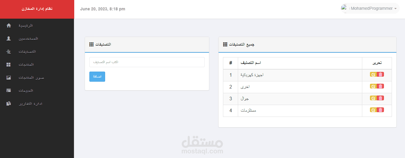 *اضافة وحذف عدد غير محدود من التصنيفات الخاصة بانواع المنتجات