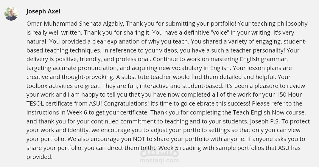 هذه هي المقاطع المرئية المبنية على أجزاء من خطط المقرر الذي قمت بتقديمه للجنة التقييم في شهادة TESOL من جامعة Arizona
