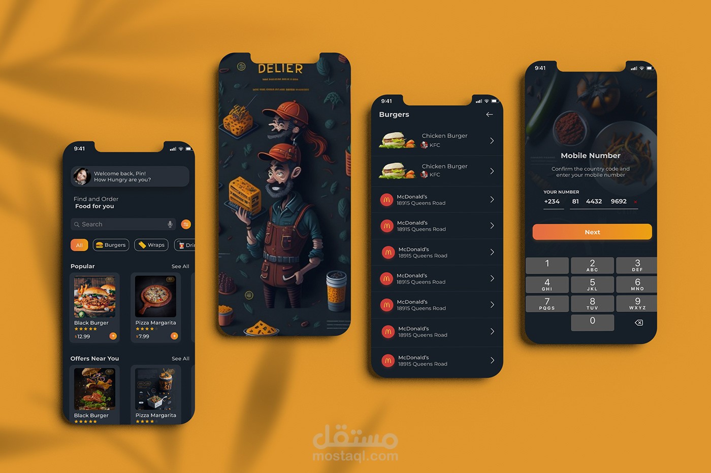 تطبيق ( Food Dilevary ) لتوصيل الطعام عبر التحديد بخريطة التطبيق والدفع عن طريق التطبيق