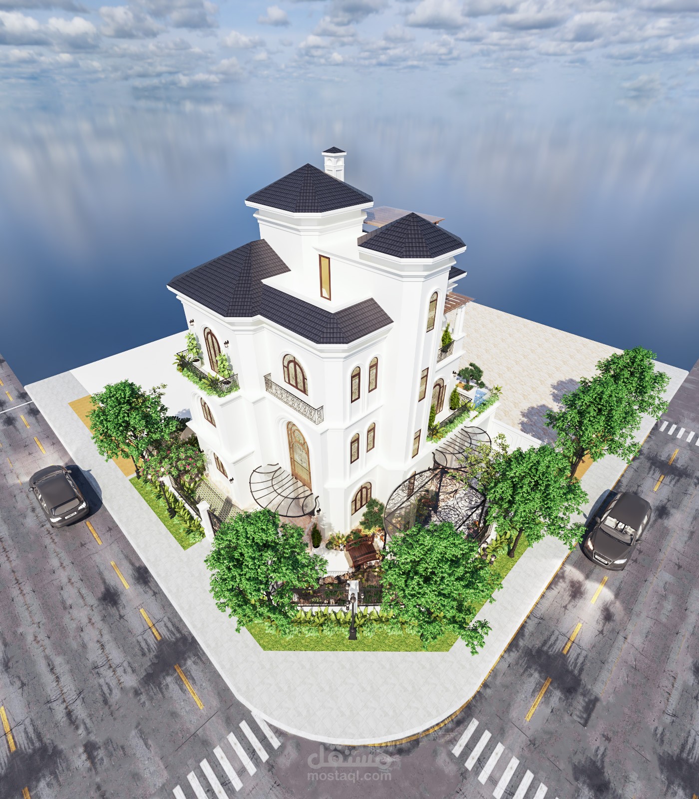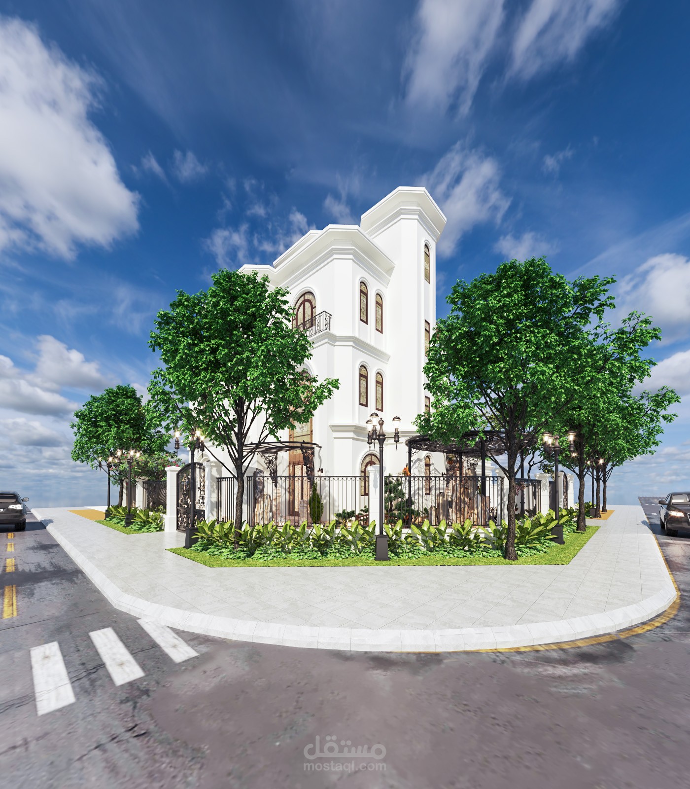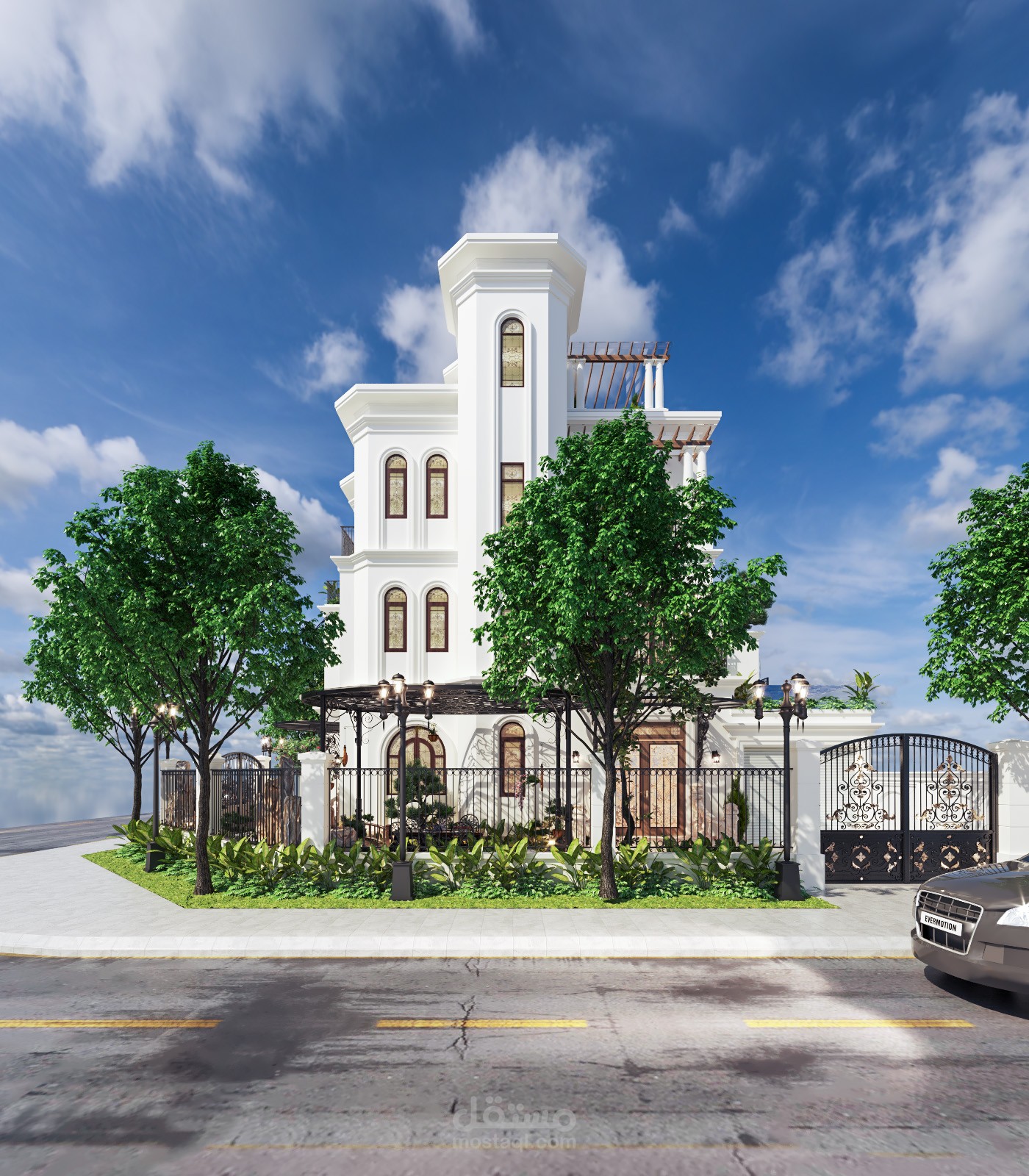 Complete interior decorations for the exterior facades of a villa in Duhail, Qatar. All decorations were done according to the neo-classical system.