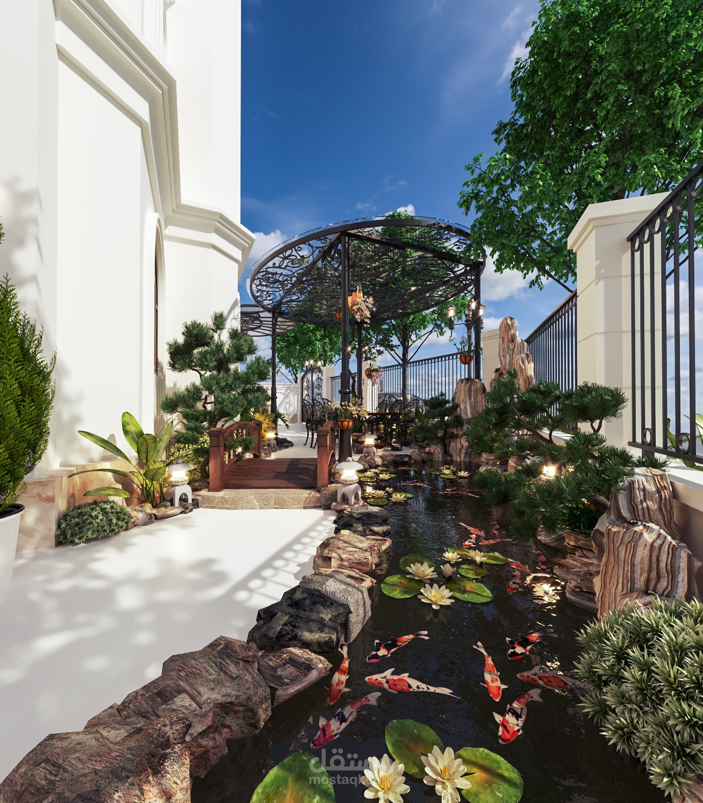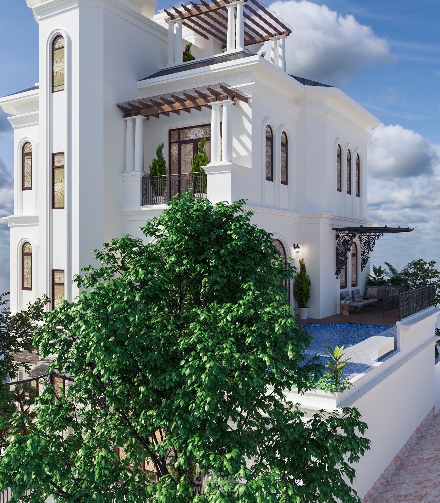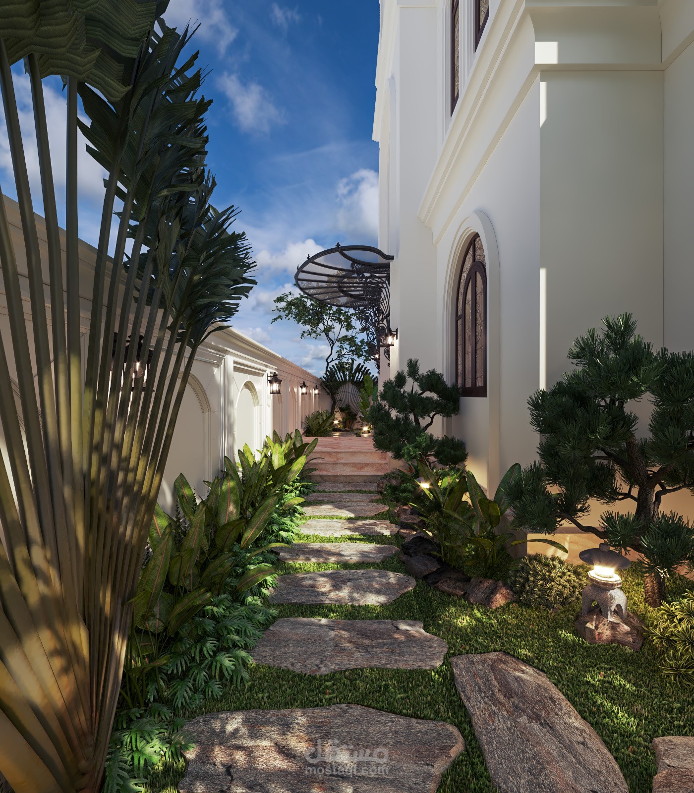 Complete interior decorations for the exterior facades of a villa in Duhail, Qatar. All decorations were done according to the neo-classical system.