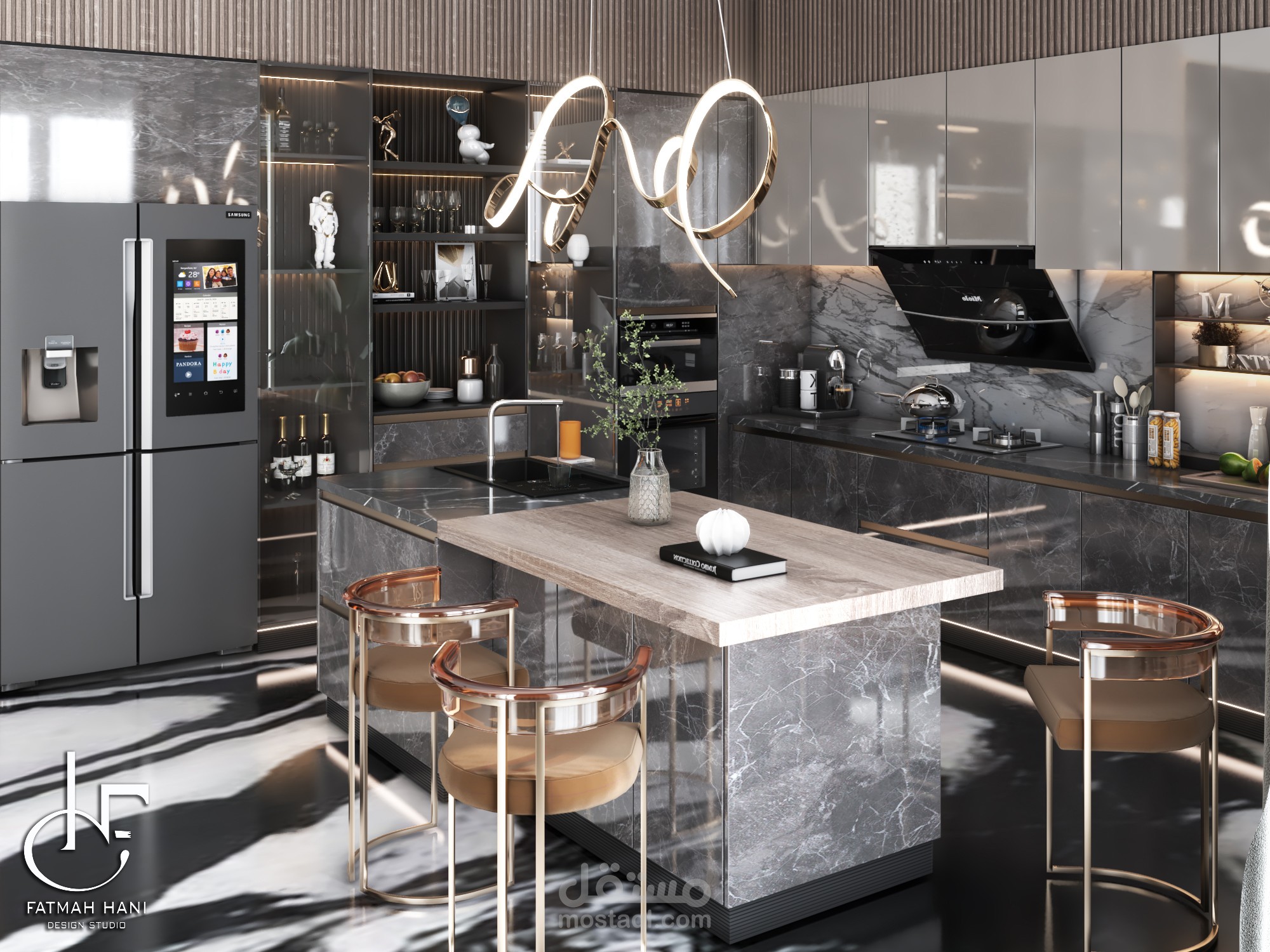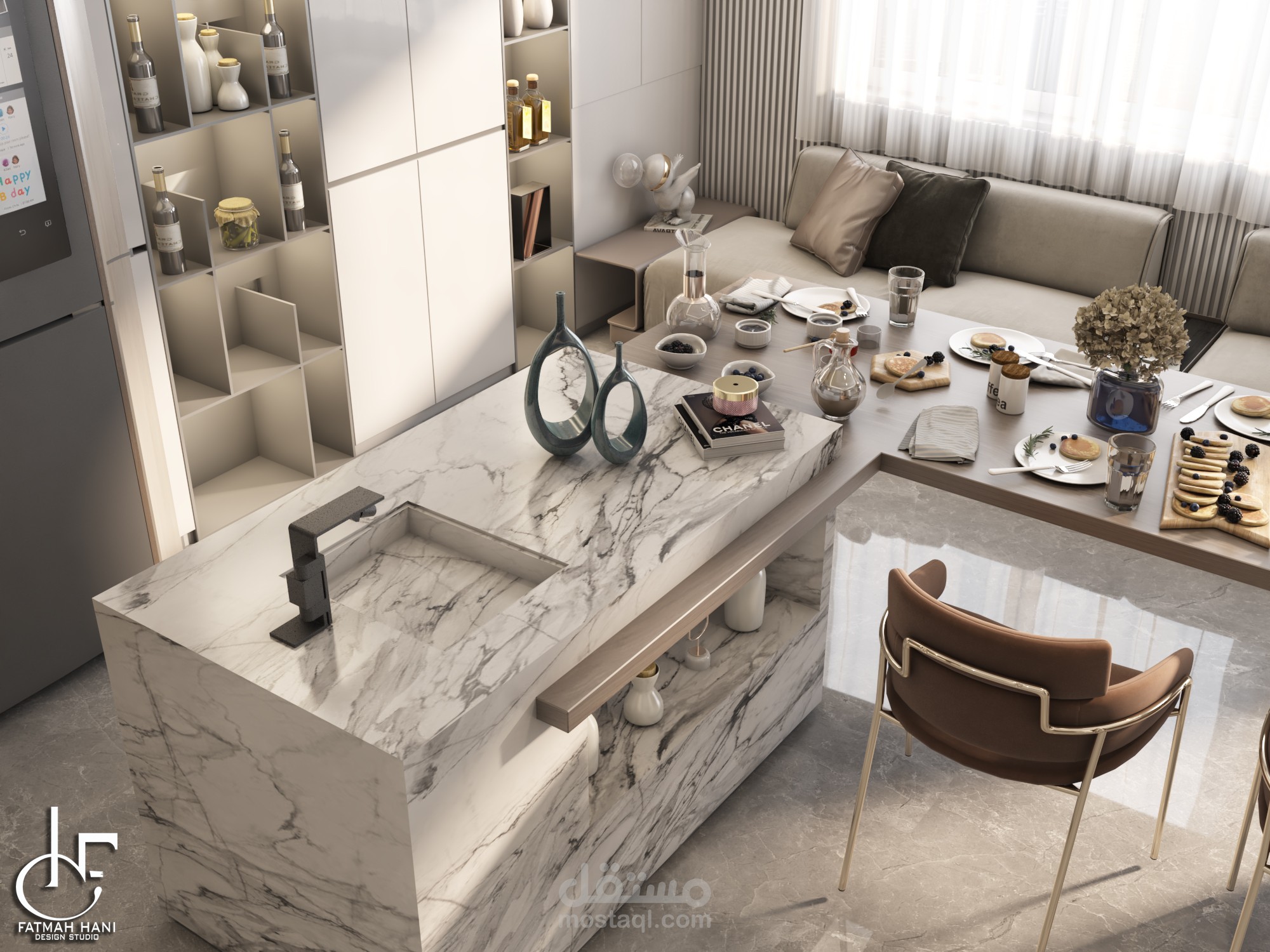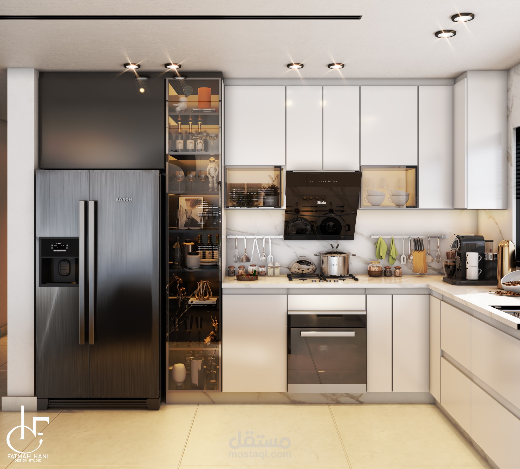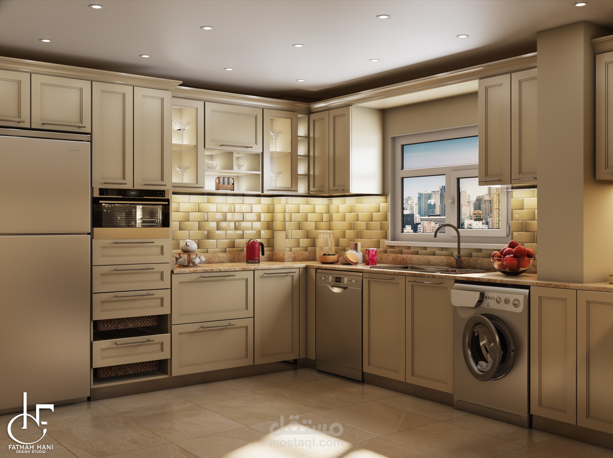 - لقطات 3D للمطبخ بكافة نواحيه لاظهار كل التفاصيل