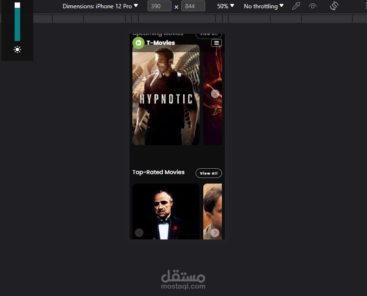 * عند الضغط علي الـ Card يتم تحويلك لصفحة بها كل تفاصيل الفيلم أو المسلسل (الاسم - البوستر - نبذة عن العمل - طاقم العمل - فيديوهات إعلان العمل - أعمال مشابهة للعمل)