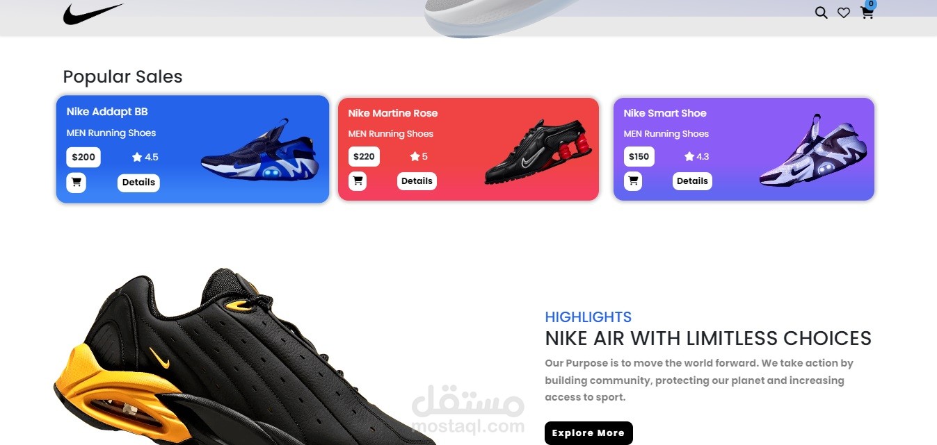 موقع Nike Store هو موقع تسوق إلكتروني لبعض المنتجات لشركة Nike بإستخدام عدة تقنيات ولغات مختلفة