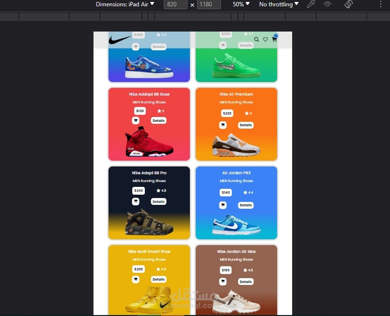 * عند الضغط علي الـ Card يتم إظهار صفحة تحتوي علي كل تفاصيل المنتج والأحجام والألوان المتوفرة وبعض التفاصيل الآخرى
