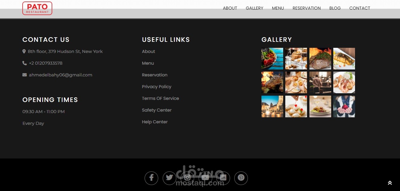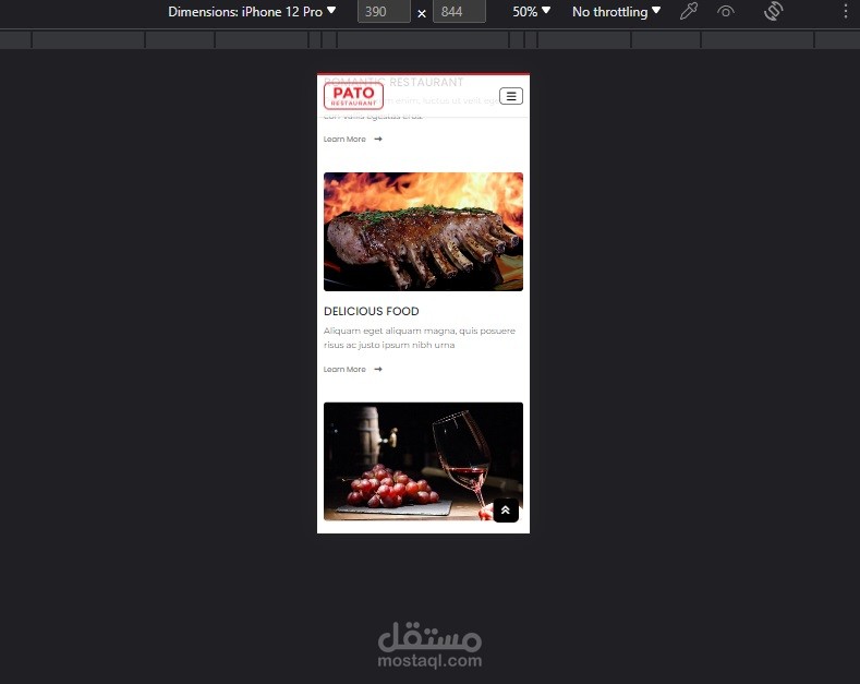 * قسم لعرض الصور من المطعم ويتم عرض الصور بطريقة فعالة ومتجاوبة مع الأجهزة المختلفة