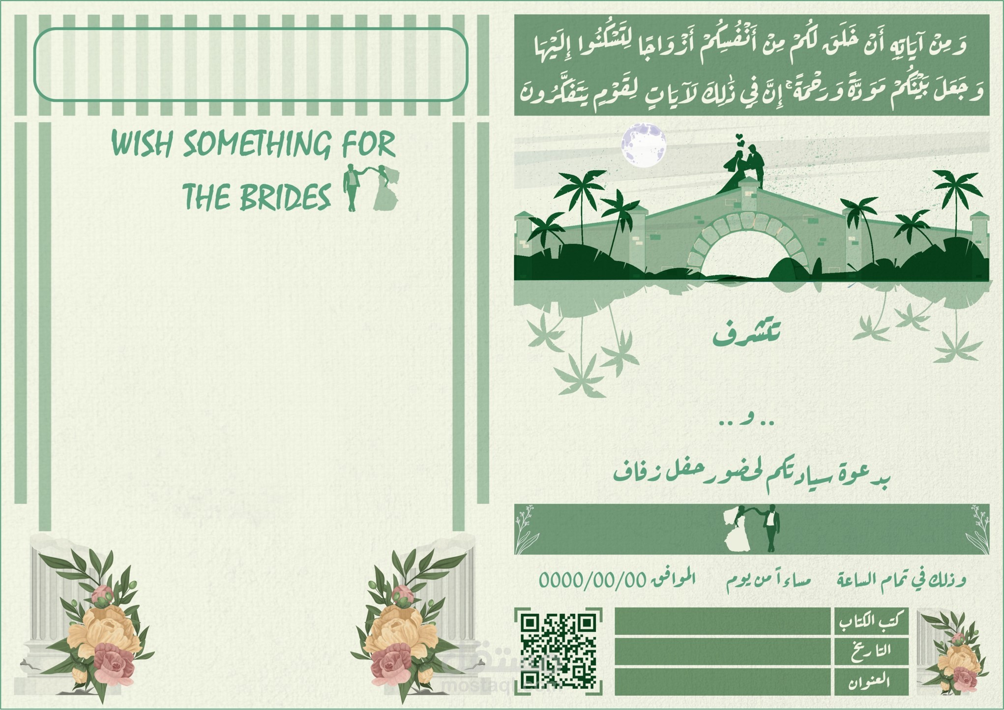 Typography: Select a font that is elegant and easy to read. Consider using a decorative font for the couple's names or a bold font for important information. Make sure the chosen font works well in both English and Arabic.