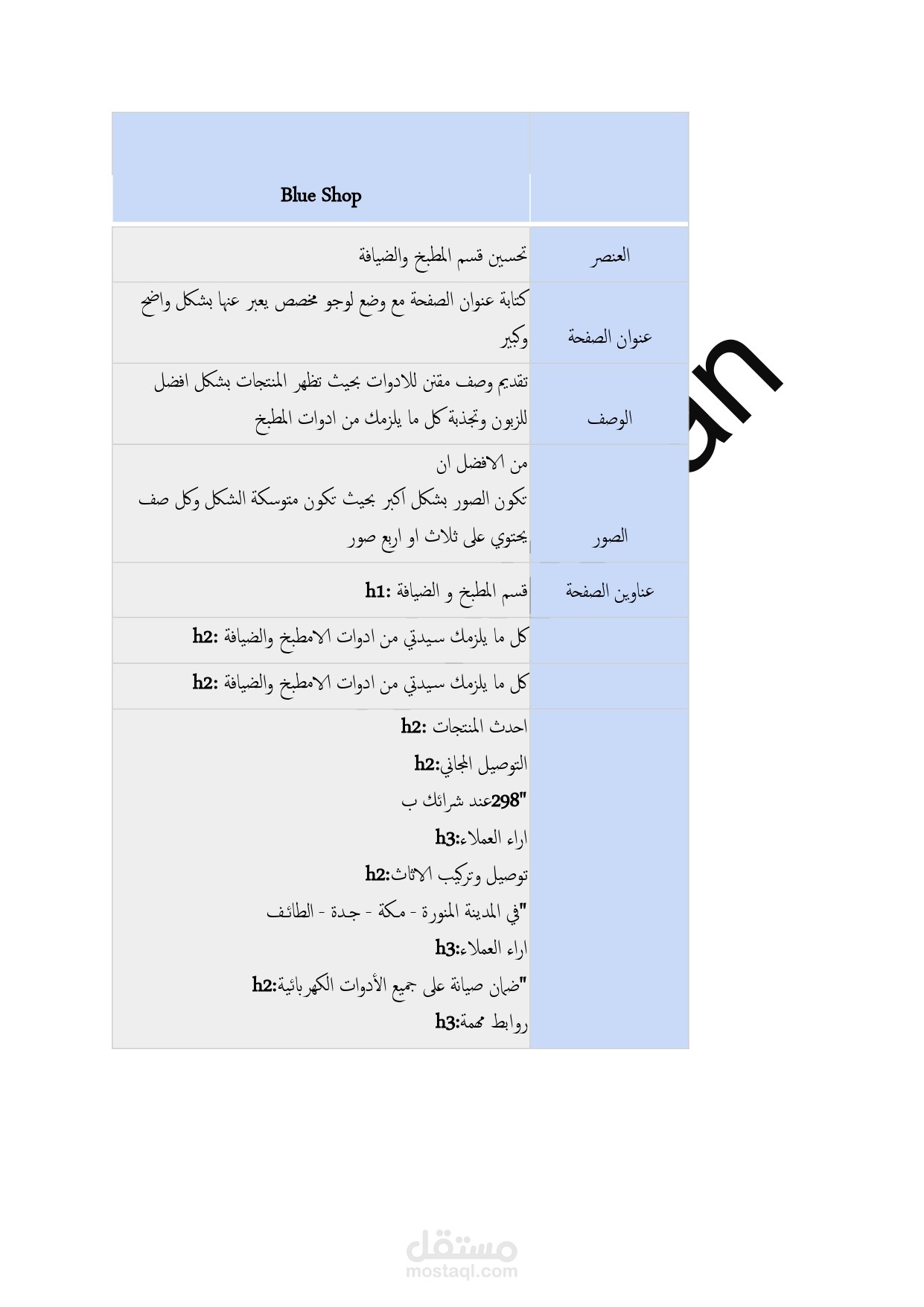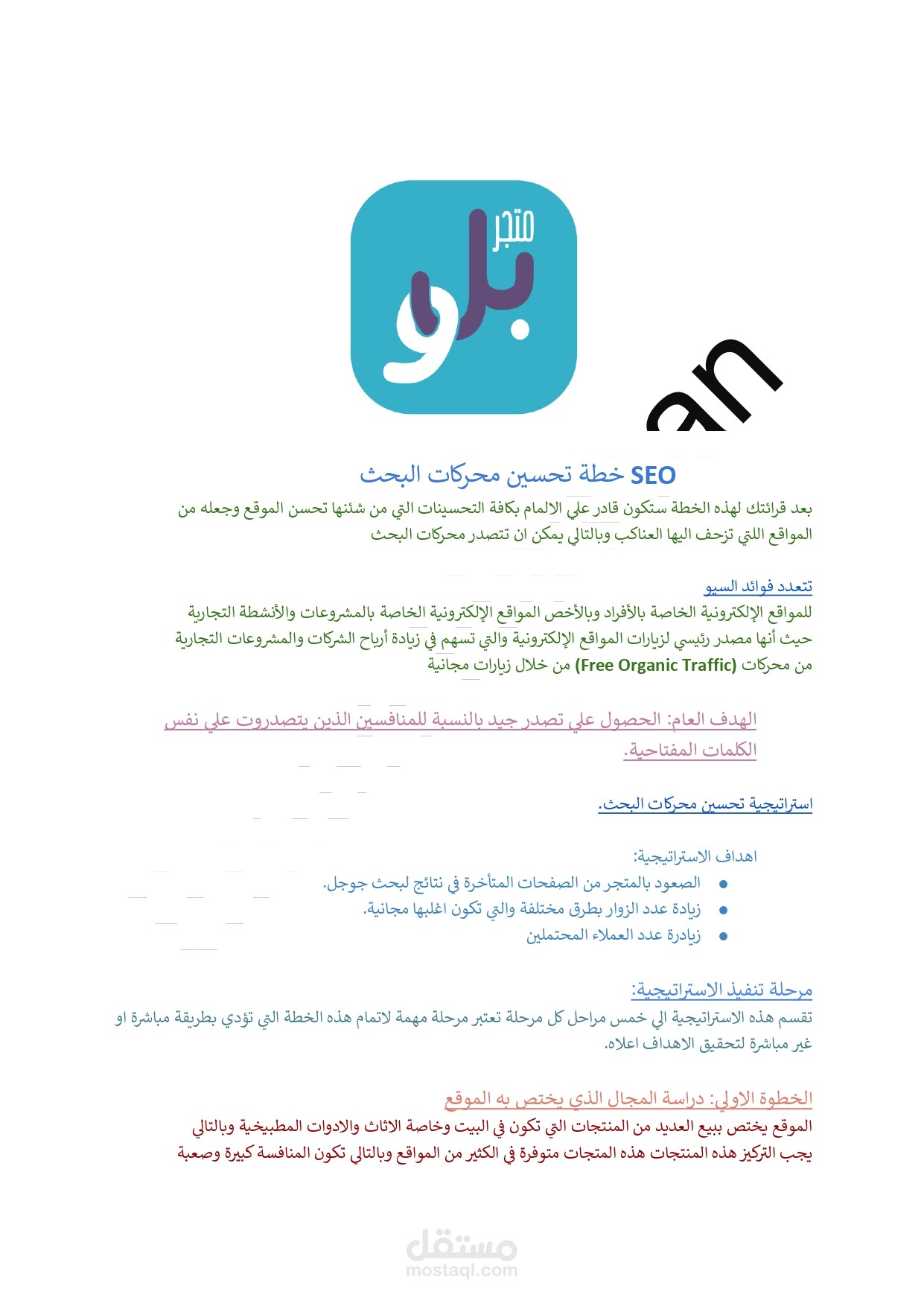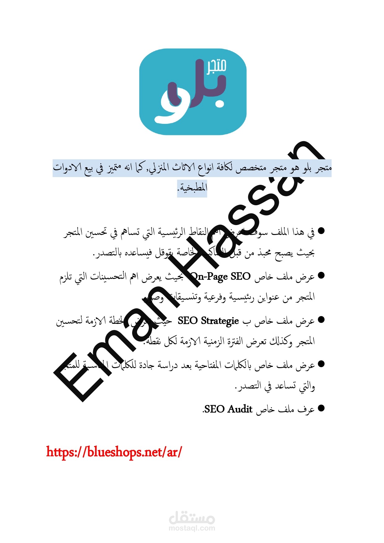 تحسين كامل لمتجر بلو شوب وتصدر الموقع في نتائج البحث