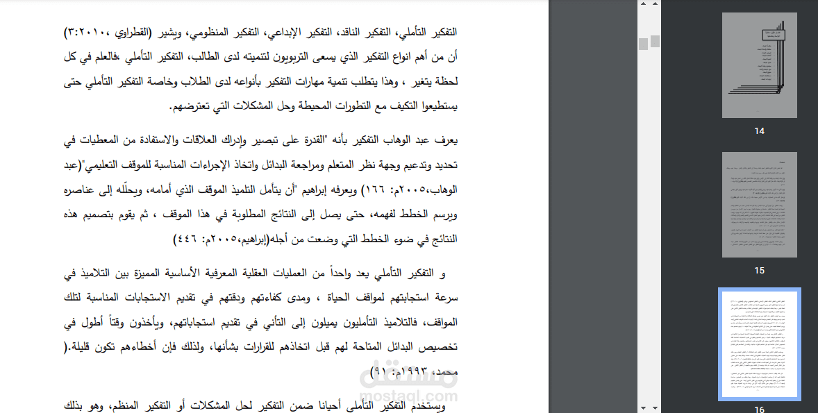 المعرفة في تنمية مهارات التفكير التأملي لدى طالبات الصف الثالث للمرحلة االبتدائية بمدينة تبوك).