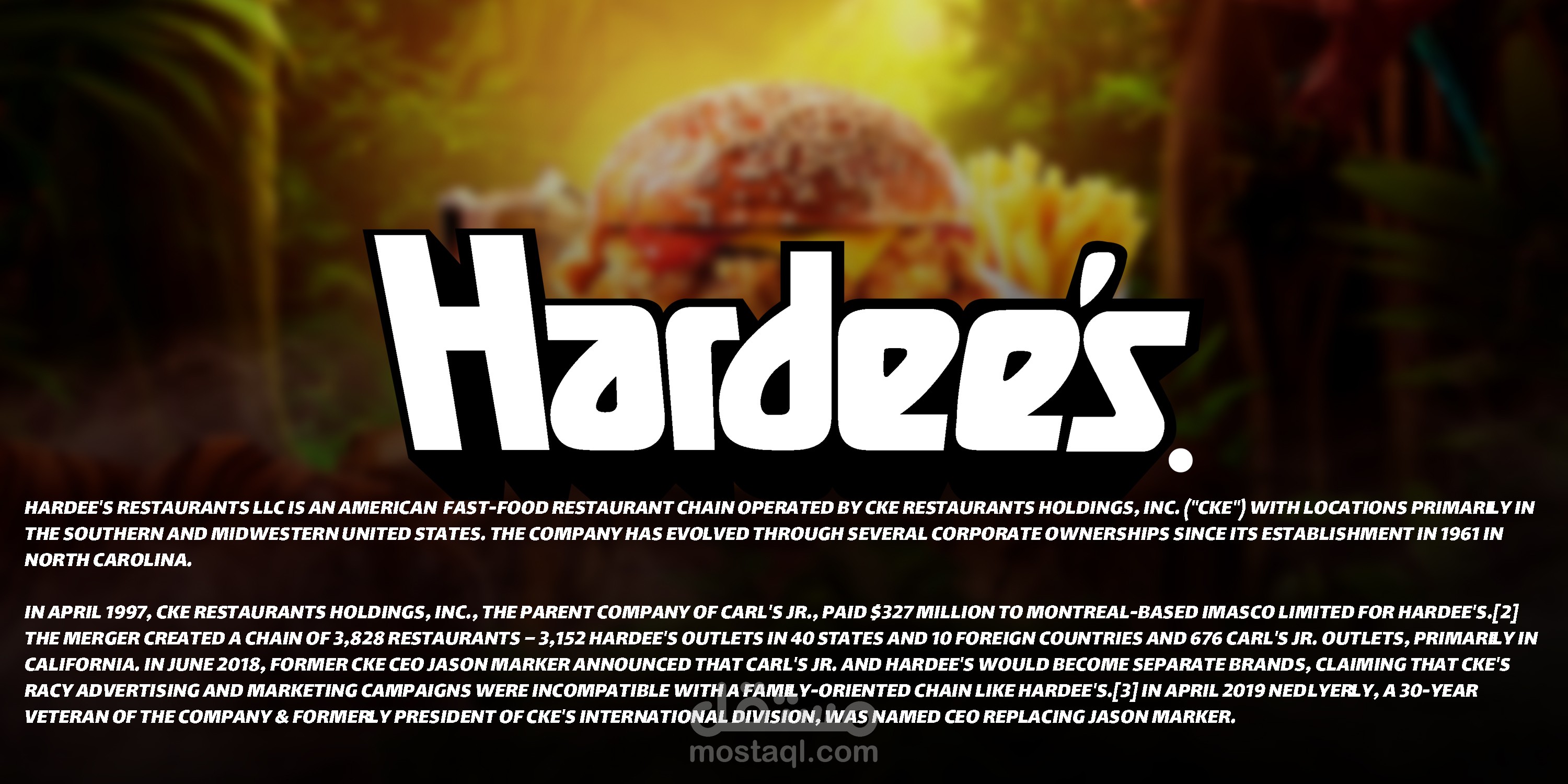 Unofficial Poster for Hardee's Restaurants LLC is an American fast-food restaurant chain operated by CKE Restaurants Holdings, Inc. ("CKE") with locations primarily in the Southern and Midwestern United States. The company has evolved through several corporate ownerships since its establishment in 1961 in North Carolina