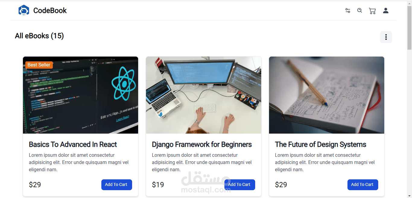 الموقع الإلكتروني لمتجر الكتب الإلكترونية الذي قمت بإنشائه هو منصة رقمية مصممة لتوفير تجربة سلسة ومشوقة للمستخدمين لاكتشاف وشراء والاستمتاع بمجموعة واسعة من الكتب الإلكترونية. يتميز الموقع بواجهة حديثة وسهلة الاستخدام تمكن الزوار من التنقل بسهولة عبر مجموعة كبيرة من الكتب الإلكترونية في مختلف الأنواع والفئات. من خلال غلافات الكتب ذات الجاذبية البصرية والوصف الشامل وآراء المستخدمين، يوفر الموقع تحليلاً قيمًا لمساعدة المستخدمين على اتخاذ قرارات مستنيرة بشأن اختياراتهم الكتابية. تساعد الخيارات المدمجة للبحث والتصفية المستخدمين على العثور بسرعة على العناوين أو الكتّاب أو المواضيع المحددة التي تهمهم. بفضل تصميمه المستجيب، يضمن الموقع توافقًا وعرضًا مثلى على مختلف الأجهزة، بما في ذلك الهواتف الذكية والأجهزة اللوحية والكمبيوترات. صمم الموقع لتزويد عشاق الكتب بمنصة مريحة ومغامرة رقمية للاستمتاع بحبهم للقراءة واستكشاف المغامرات الأدبية الجديدة.