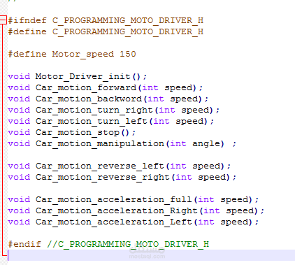 This code appears to be a header file for a motor driver library in C++. A header file typically contains declarations for functions, constants, and other objects that can be used in other parts of a program. Here's a quick overview of what this header file does: