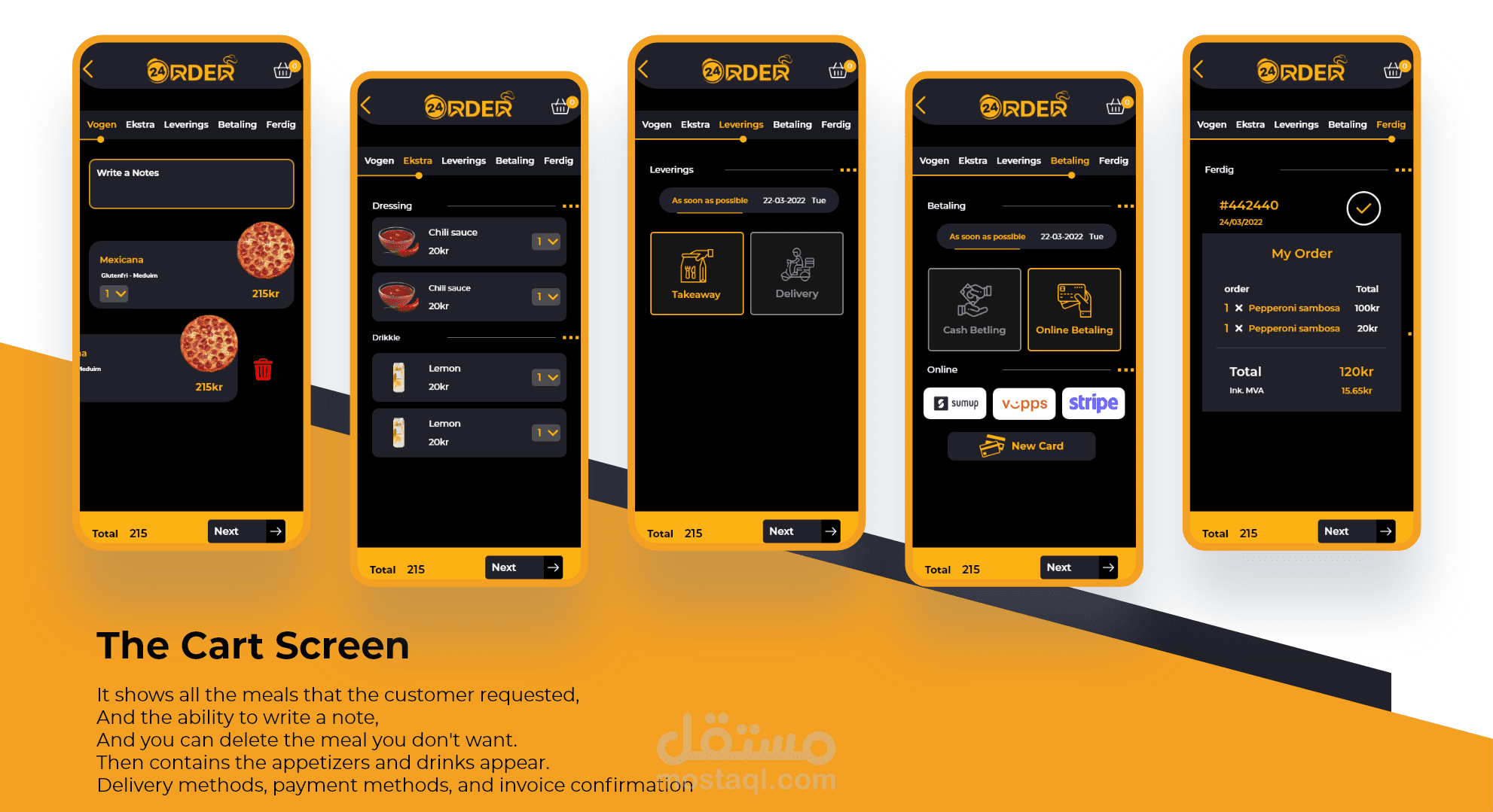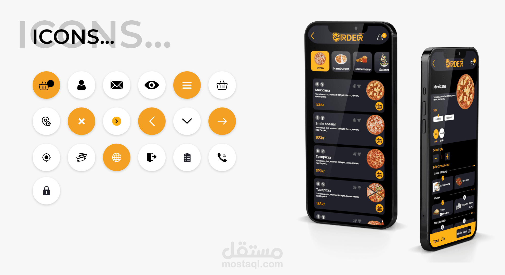 تصميم موقع وتطبيق لمطعم 24Order يعرض منيو للمطعم وتفاصيل كل وجبة, مع امكانية الطلب واختيار المكونات التي يحبها الزبون.