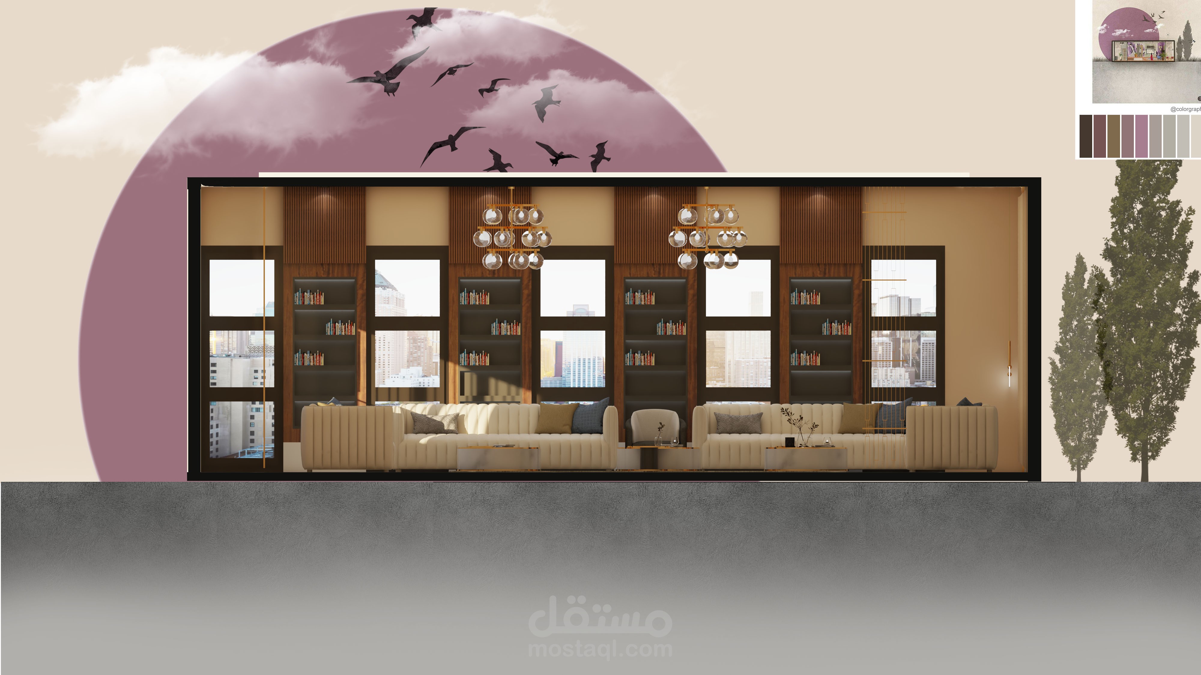 الهدف من العمل كان اعادة تصميم غرفة معيشة بما يناسب المكان ويليق به مع الاظهار المناسب وحسب اختيار العميل مع اخراج الصور بجودة عالية