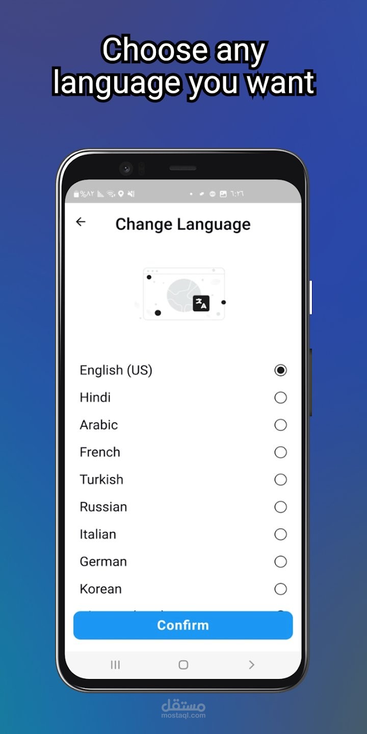 يتضمن التطبيق العديد من اللغات بالاضافة لطرق دفع مختلفة :