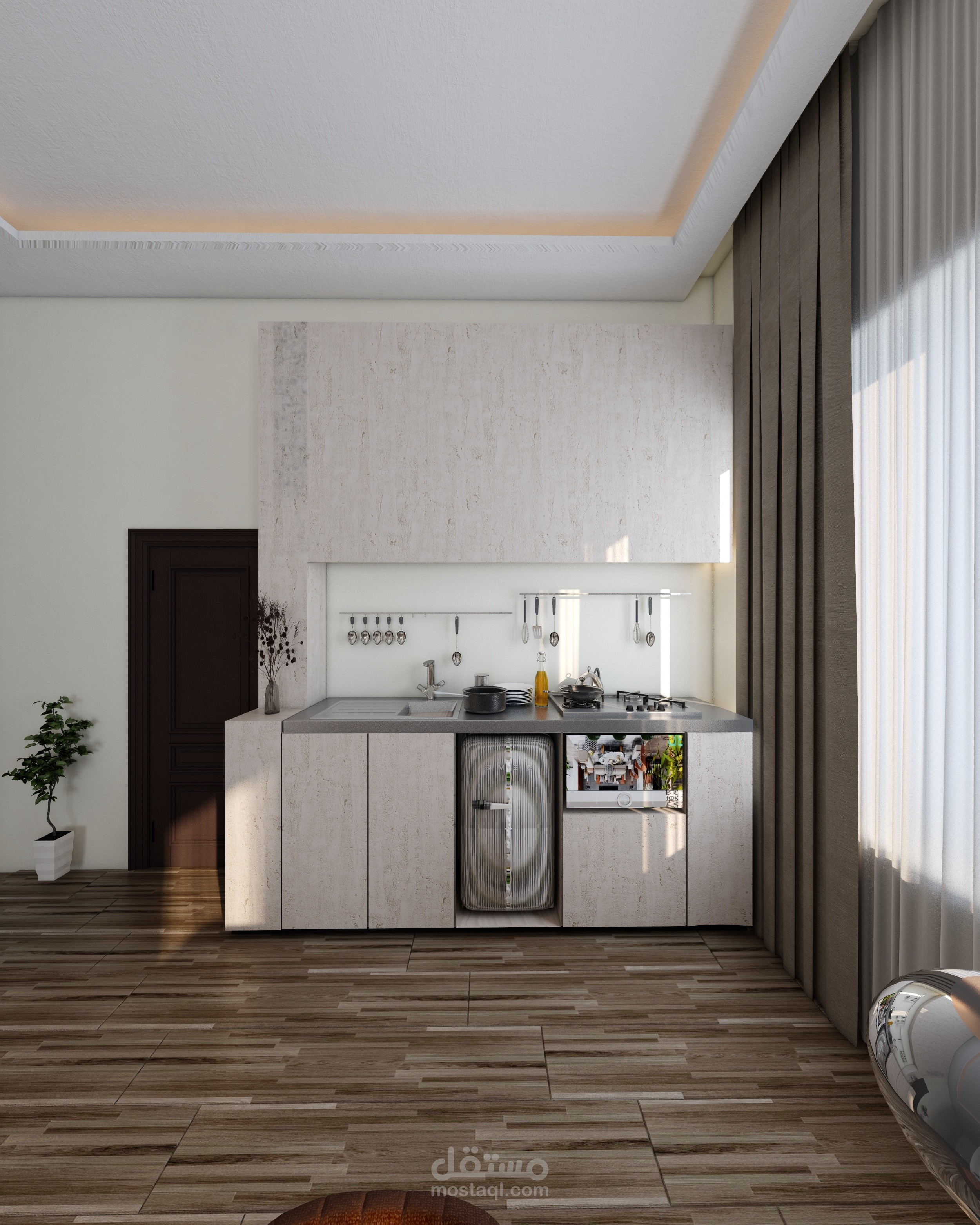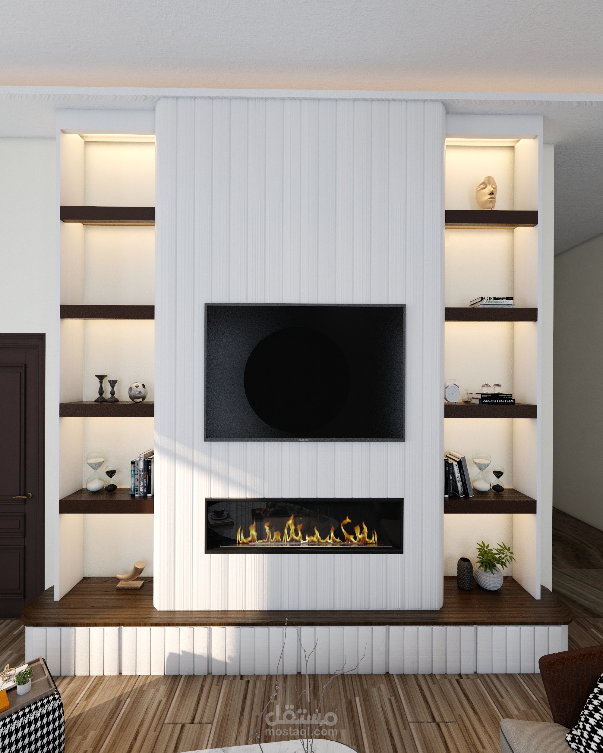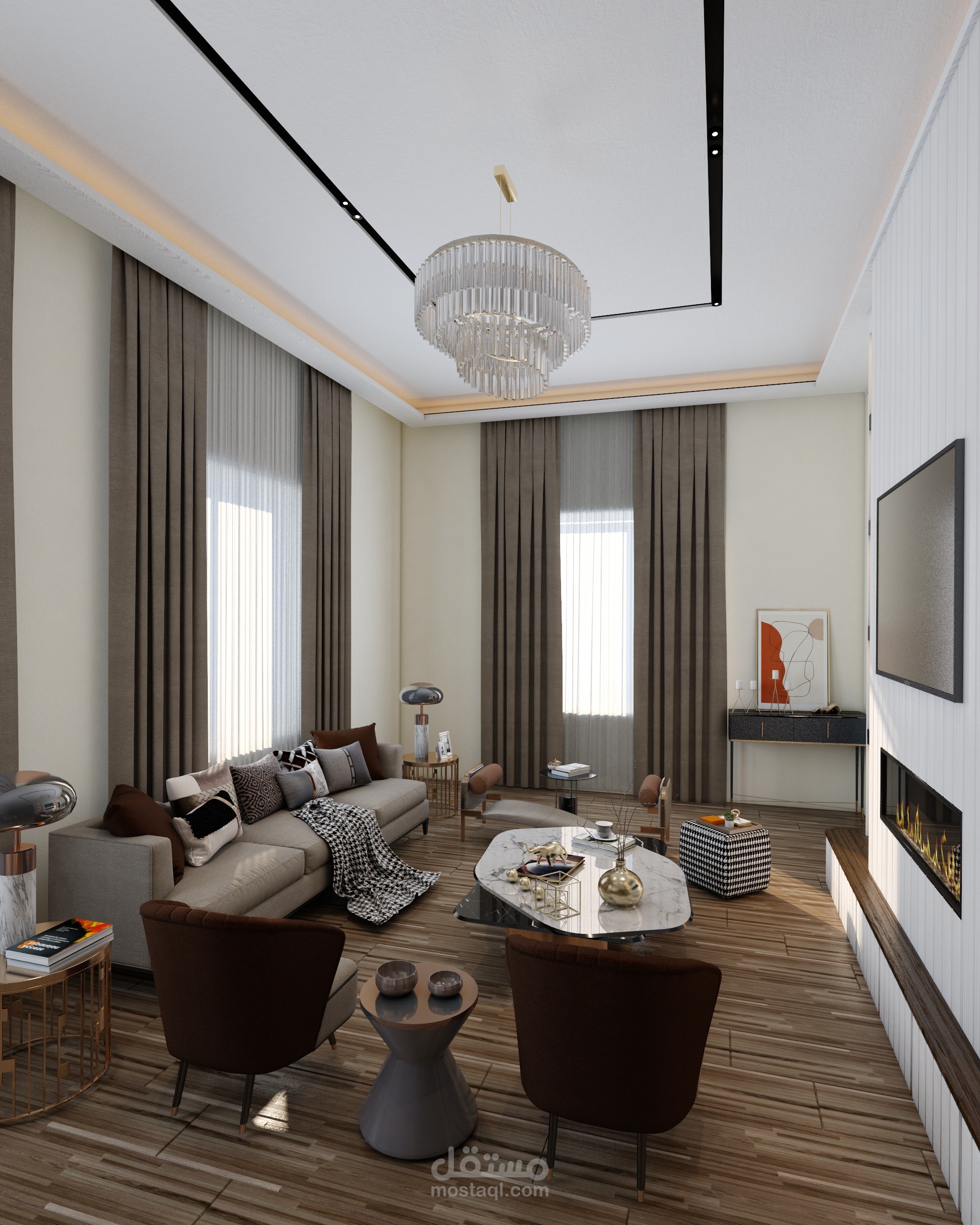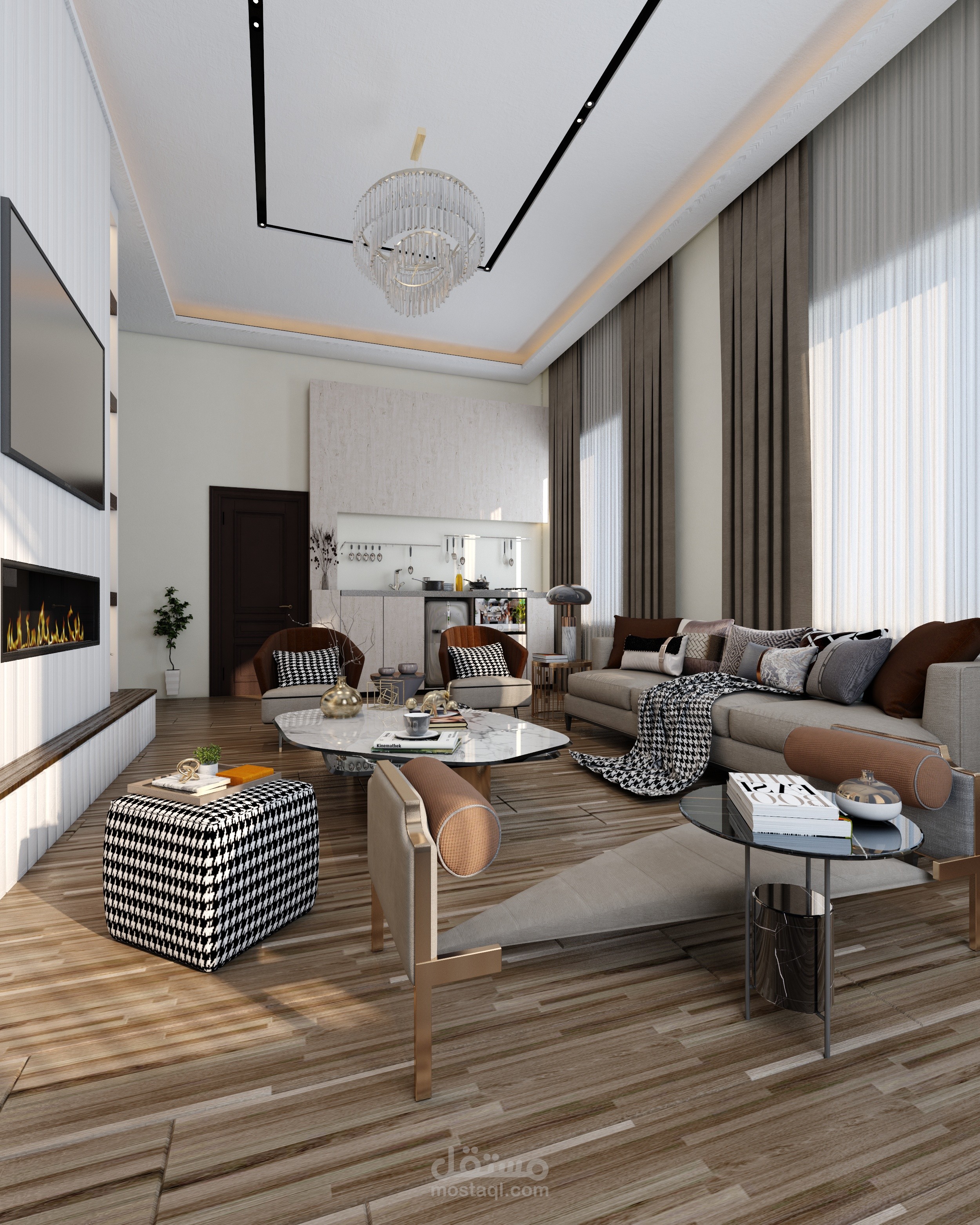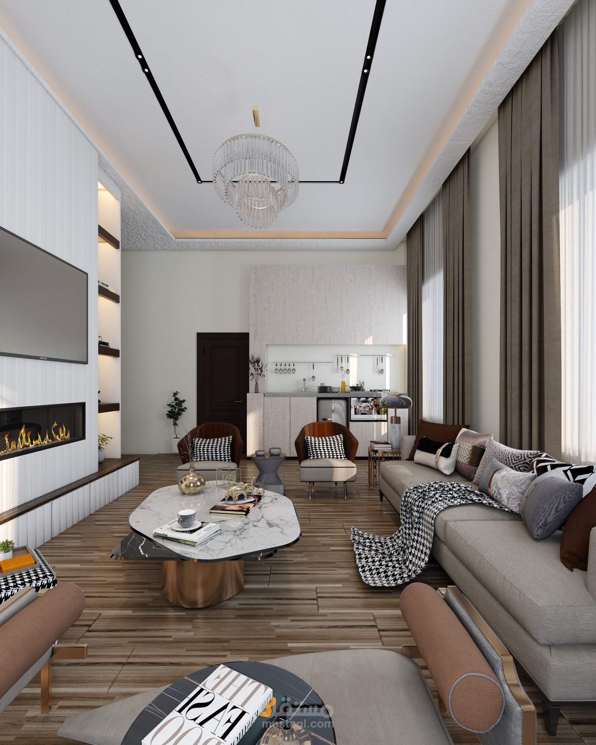 غرفة معيشة بتفاصيل مختارة من قبل العميل