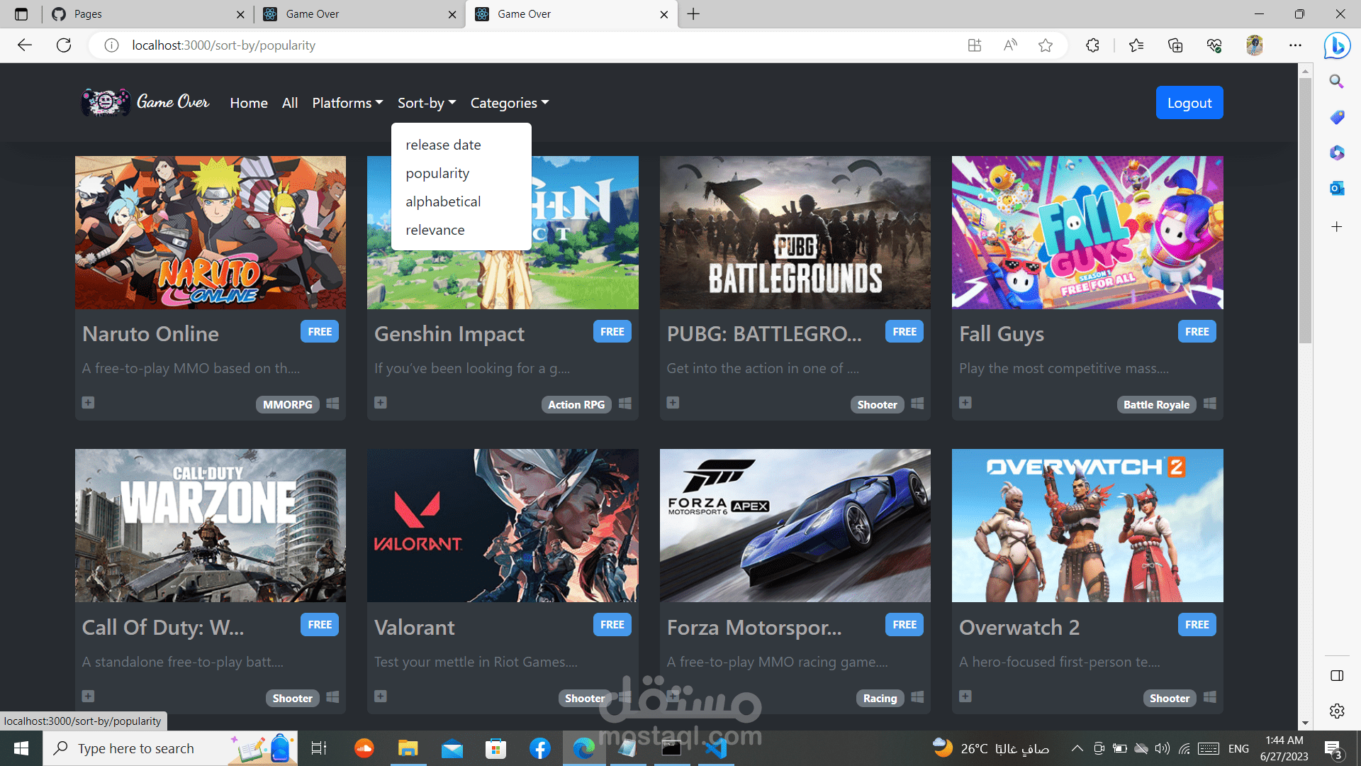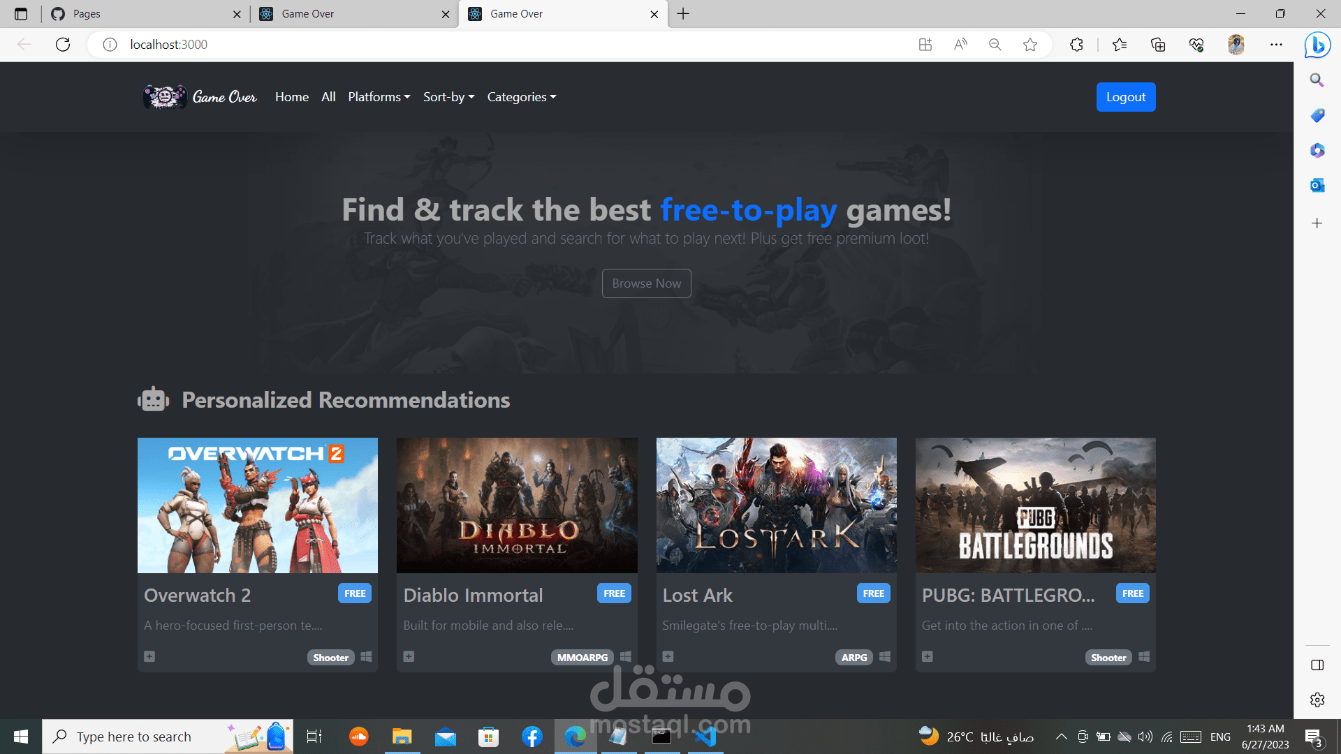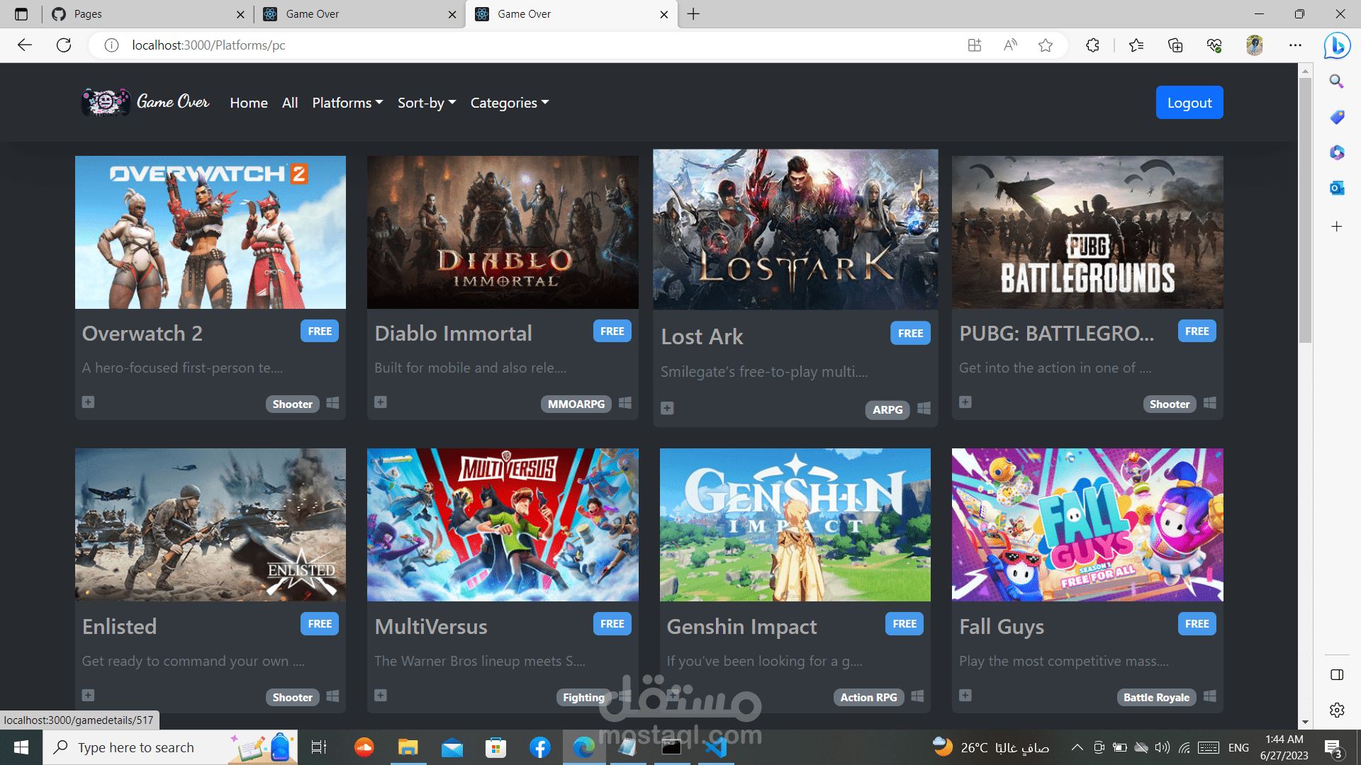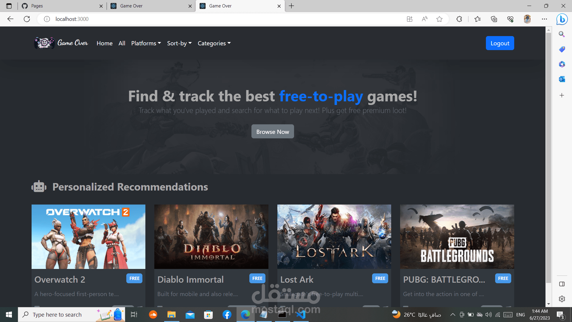 السلام عليكم لقد قمت بعمل موقع العاب متطور بمساعده ما درسته من (html , Css , java script, bootstrap, react, sass, jquery)و لقد استخدمت api حقيقي للألعاب و بذلك فان جميع الالعاب تعمل و يجب تسجيل الدخول اولا بالgmail و الpassword حتا تتمكن من الدخول للموقع و ذلك مع حفظ معلوماتك الخاصة