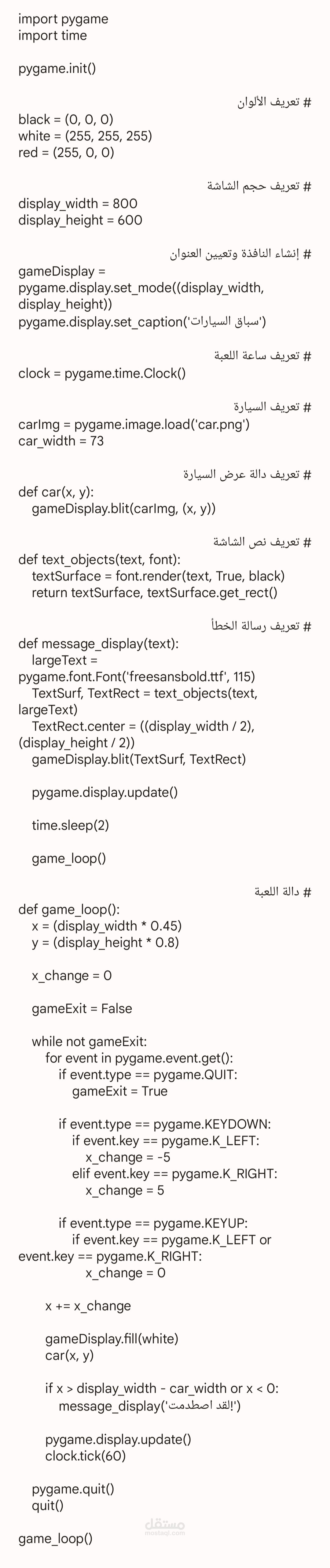 كود برمجة لعبة سيارات