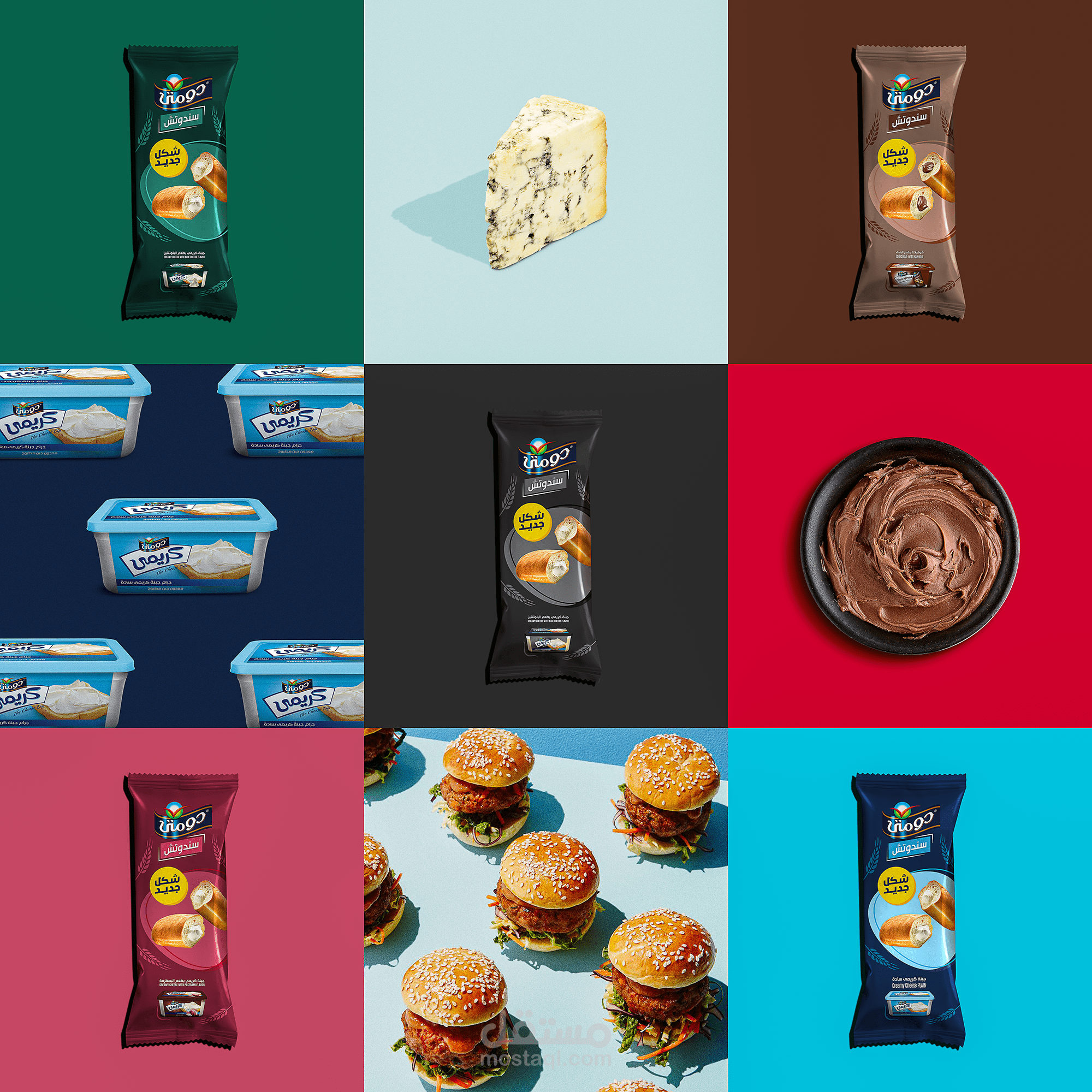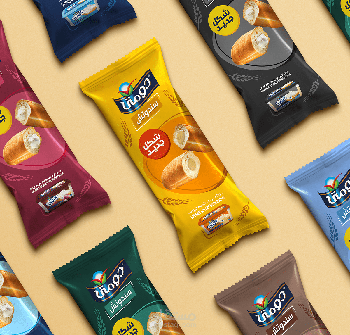 دومتي كان لديها رؤية جريئة. لقد سعوا إلى الارتقاء بتجربة السندويشات المحبوبة من خلال تصميم تغليف جديد وجذاب. لذلك قمت بتصميم تغليف من شأنه أن يثير الحواس ويلتقط أعين المستهلكين. مستوحاة من جوهر الشطيرة نفسها ، قمت بدمج اللون الذهبي للقمح ، رمزًا للتغذية والرضا. لقد غرست التصميم بعناية في جوهر كل نكهة ، مما يضمن مجرد رؤية منتجات دومتي للجبن الأخرى. وجعل هذه العبوة انعكاسًا للعناية والعاطفة التي تتماشى مع كل شطيرة دومتي ، ودعوة العملاء لتذوق اللحظة واحتضان النكهات.