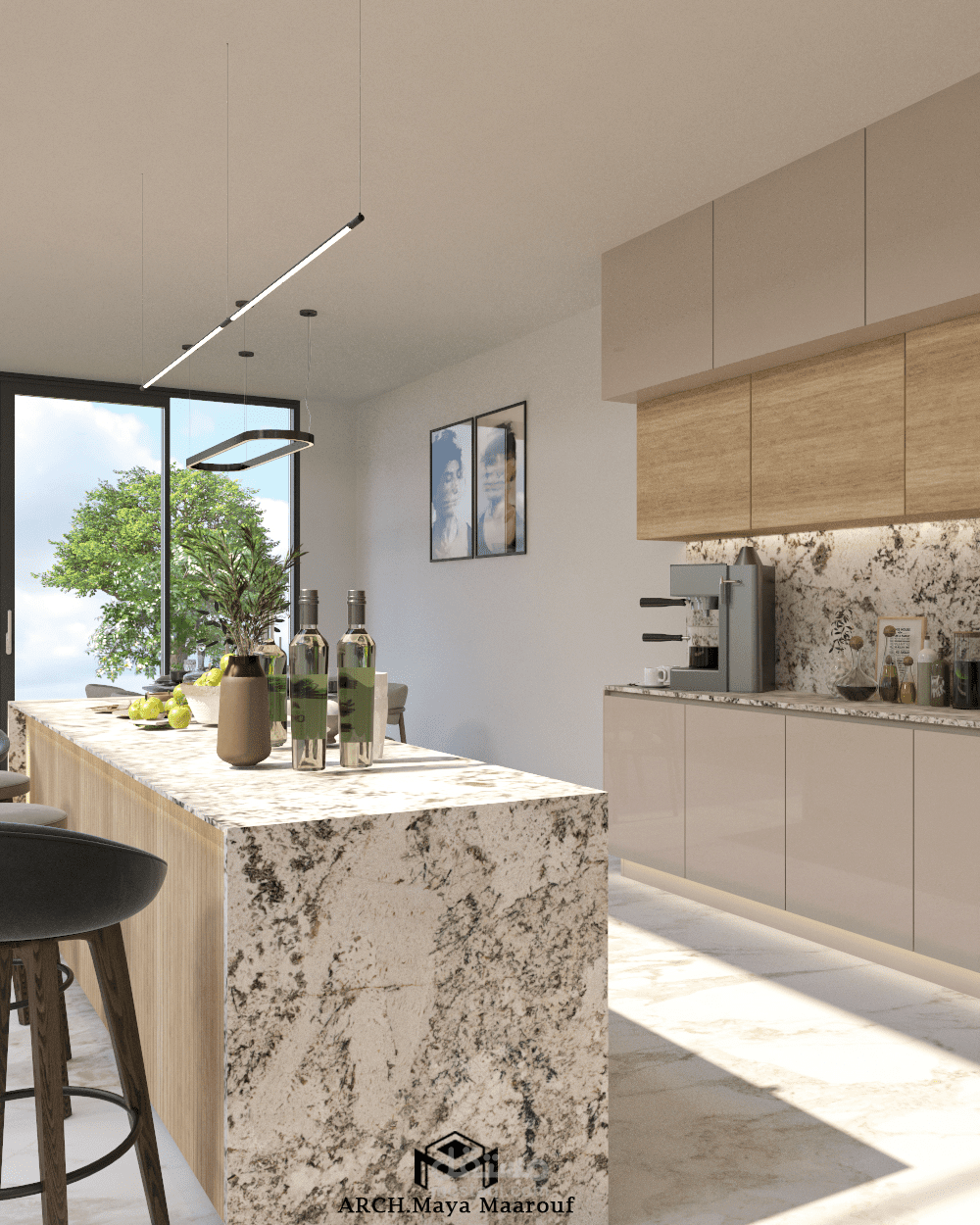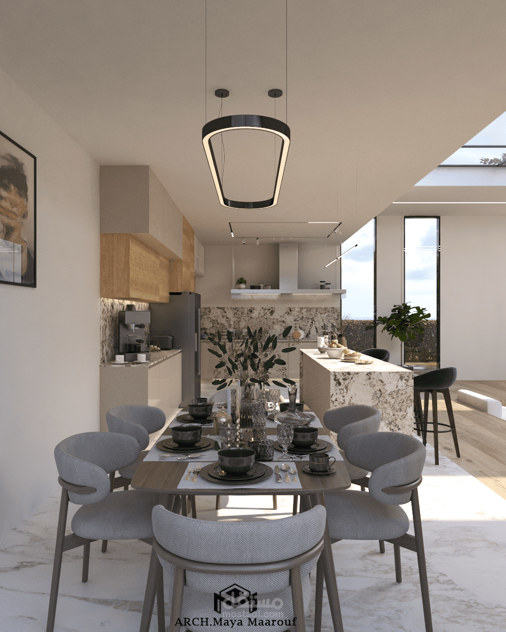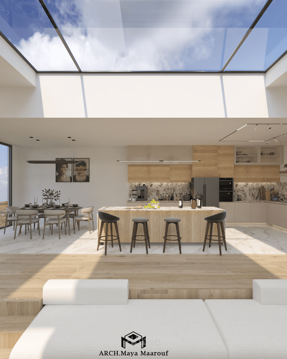 تصميم مطبخ مفتوح على غرفة معيشة بستايل مودرن بسيط