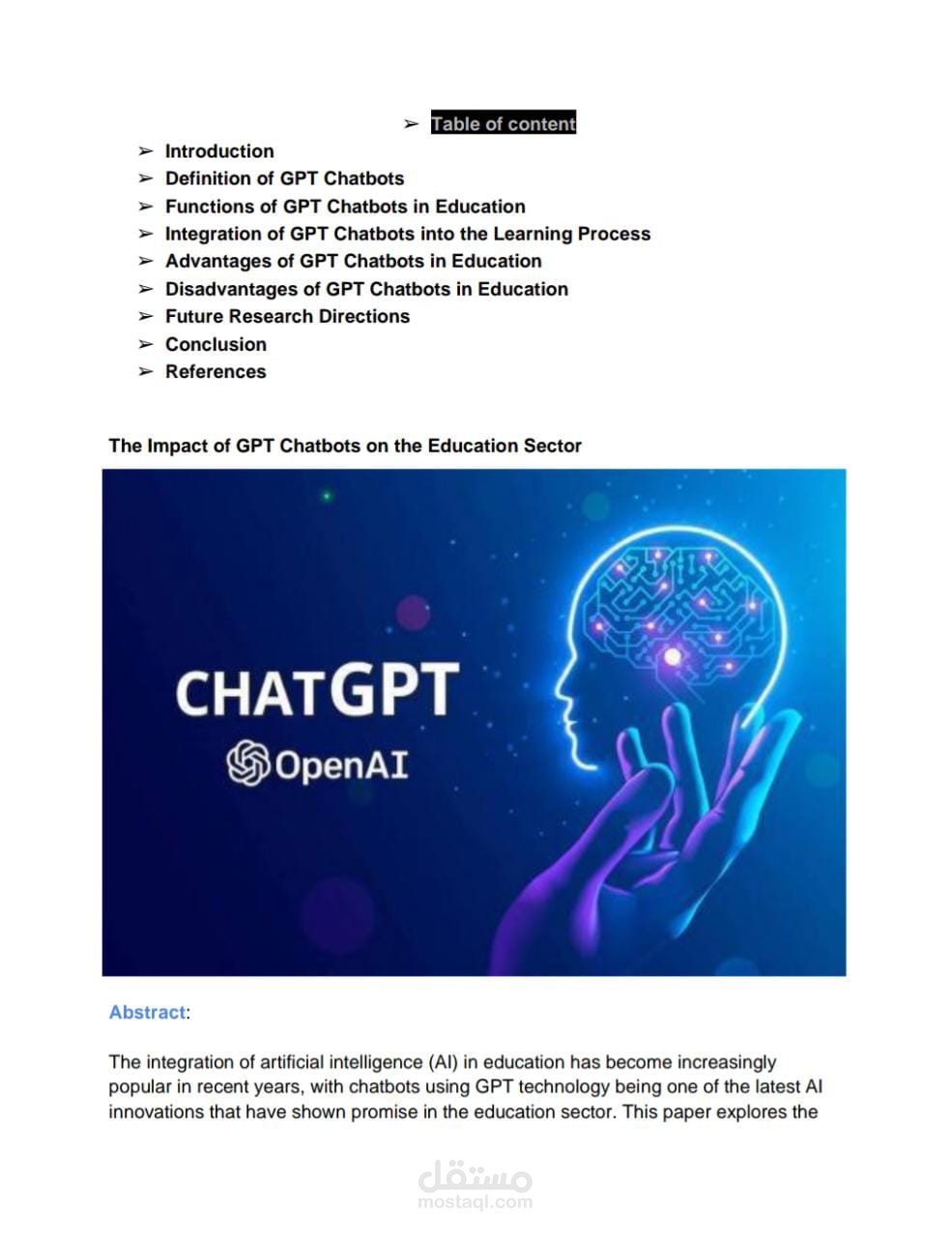 اخر اعمالي بحث باللغة الإنجليزية عن Chat GPT وتأثيره ودوره على التعليم .