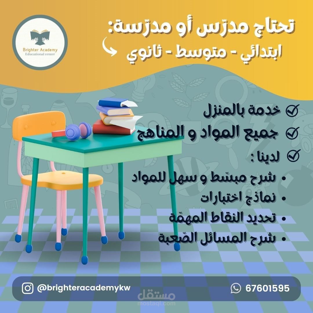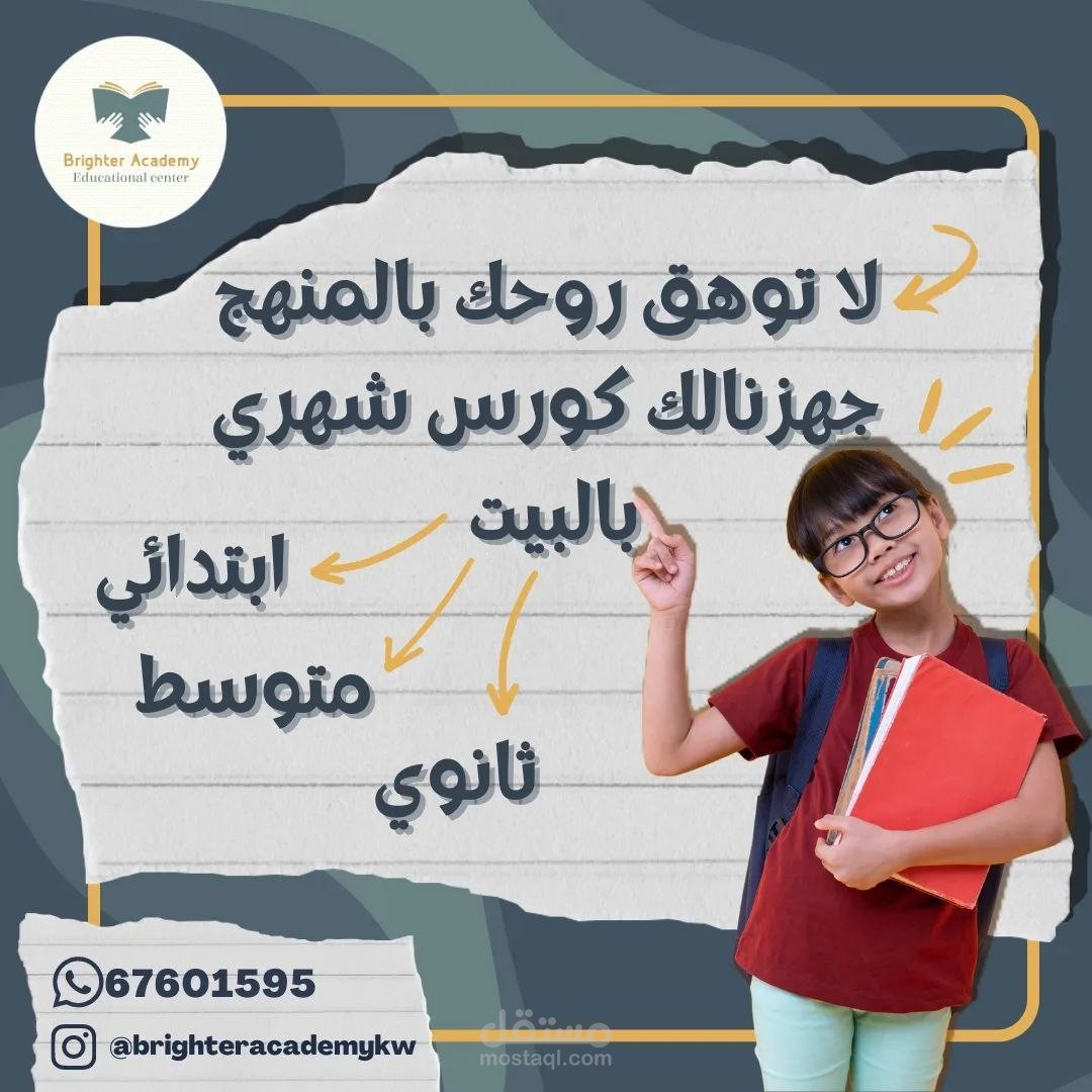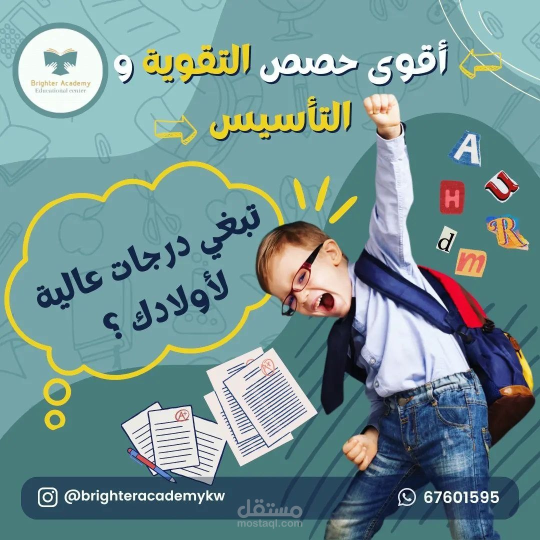 تصاميم اعلانية لمعهد تعليم Brighter Academy . التصاميم خاصة لحساب الانستغرام التابعة للمعهد.