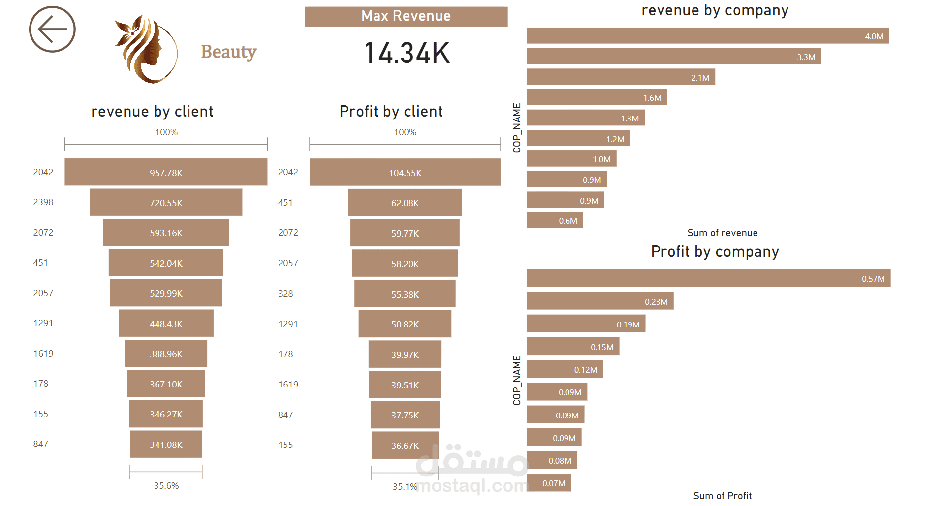 ما هي أعلى إيرادات وأرباح عميل؟ (أعلى 10)