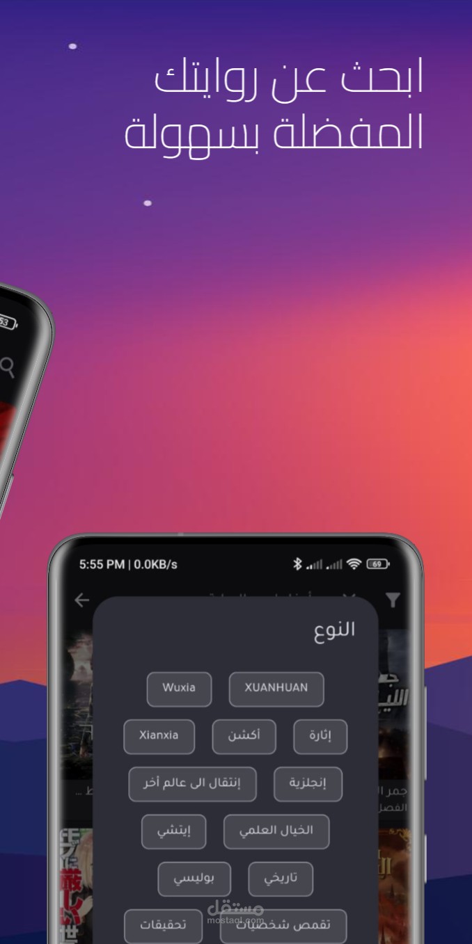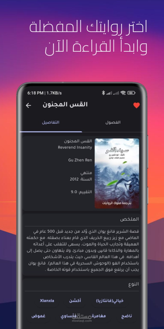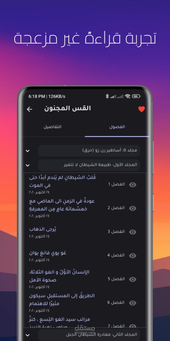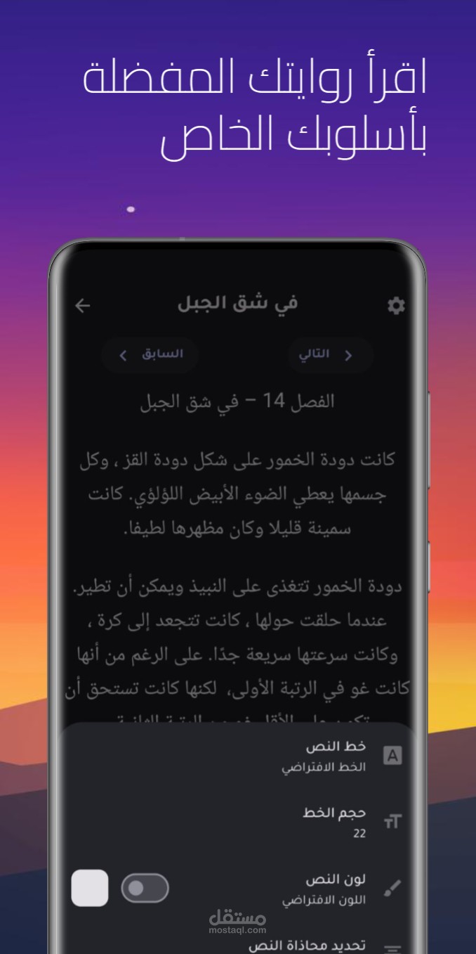 4)إشارات مرجعية تلقائية: عند فتح رواية، يأخذك التطبيق تلقائيًا إلى آخر فصل كنت تقرأه.