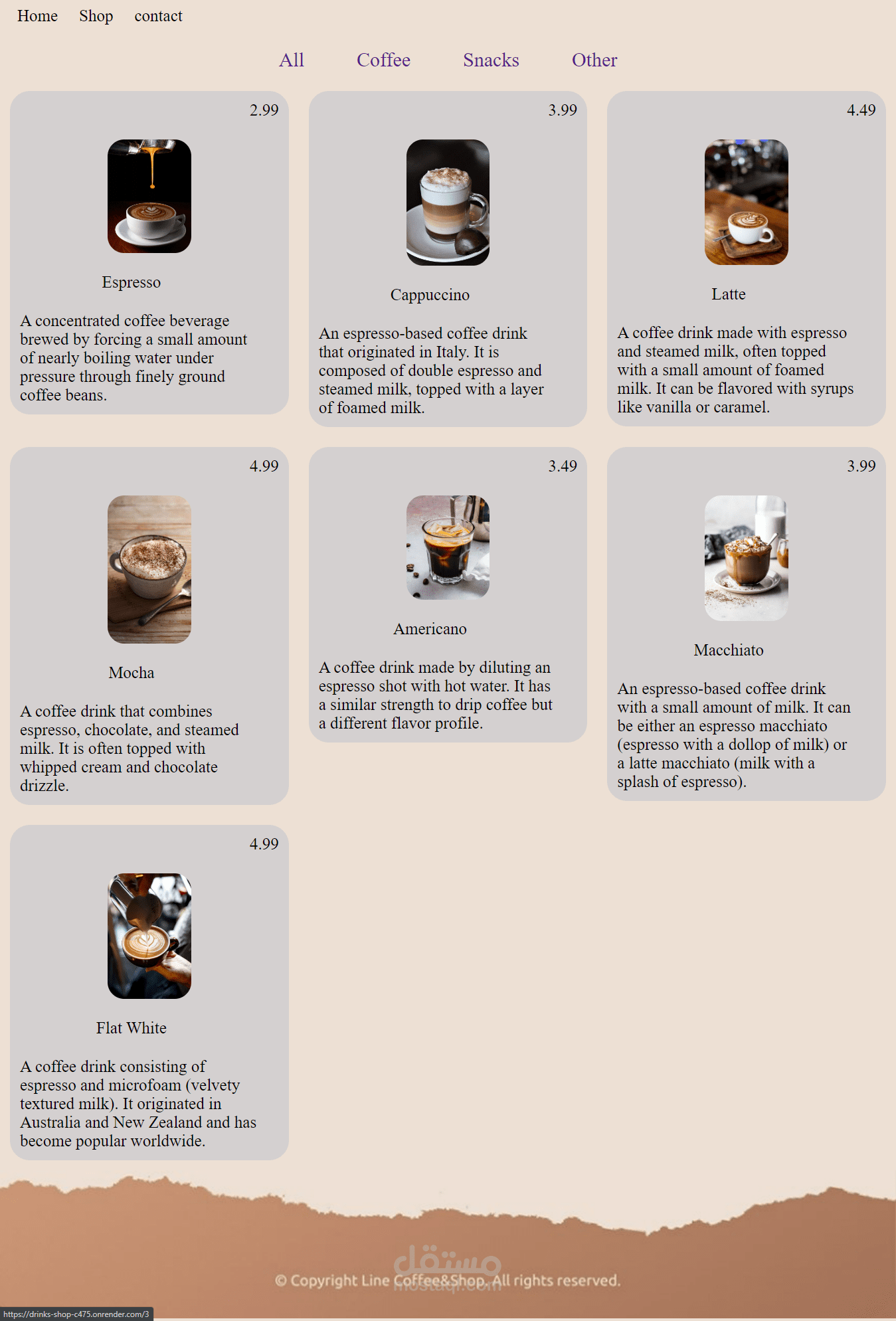 كتالوج المنتجات: تم إنشاء كتالوج جذاب يعرض مجموعة واسعة من المشروبات. تحتوي كل صفحة منتج على معلومات مفصلة، مثل وصف المشروب والصوره والسعر.