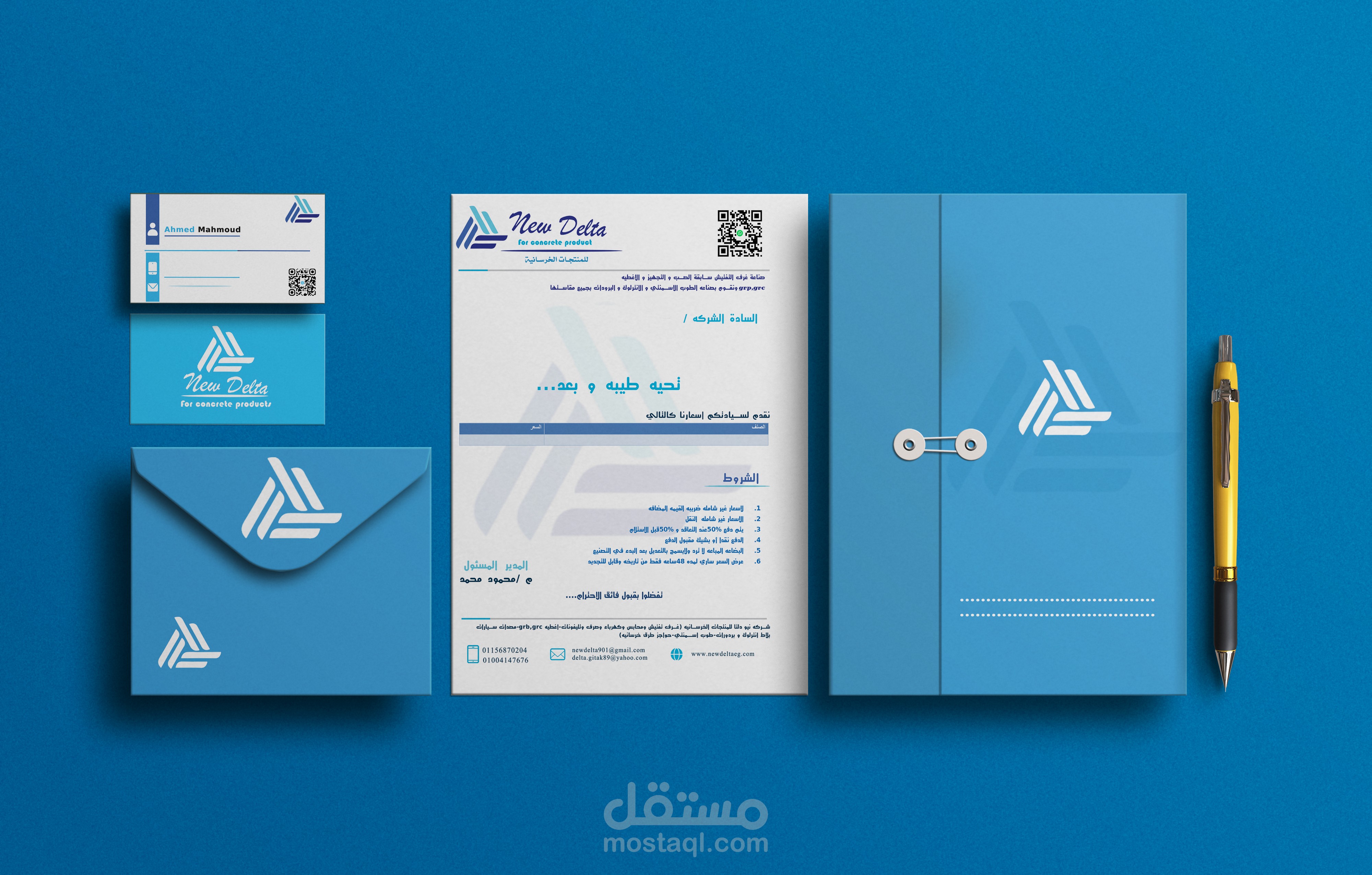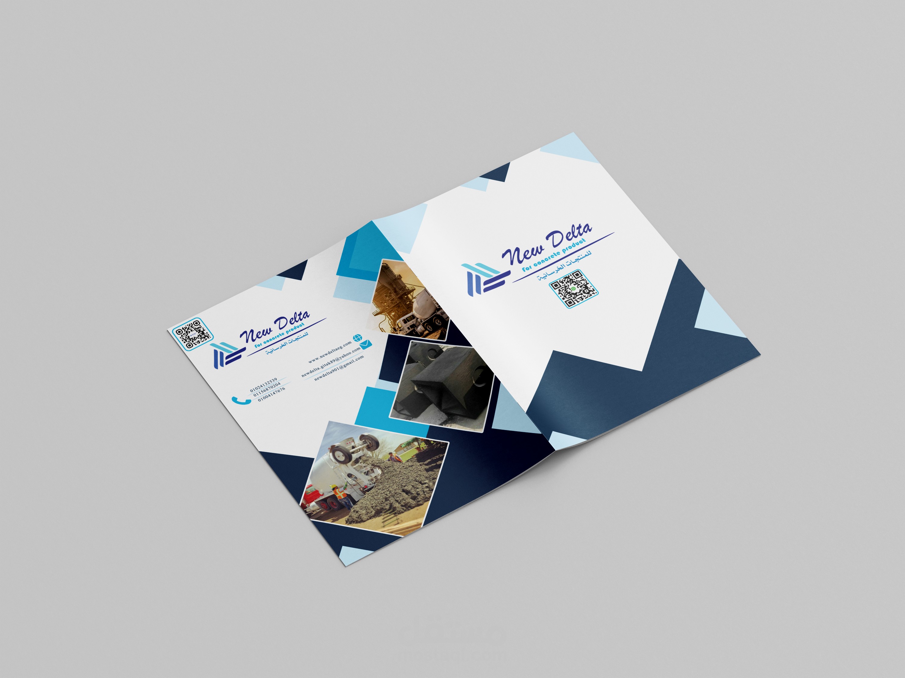تصميم هوية كاملا لشركة نيو ديلتا بتصميم كتالوج و بزنس كاردو ورقة مبيعات