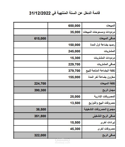 قائمة دخل لشركة معينة لمعرفة الارباح خلال فترة معينة.
