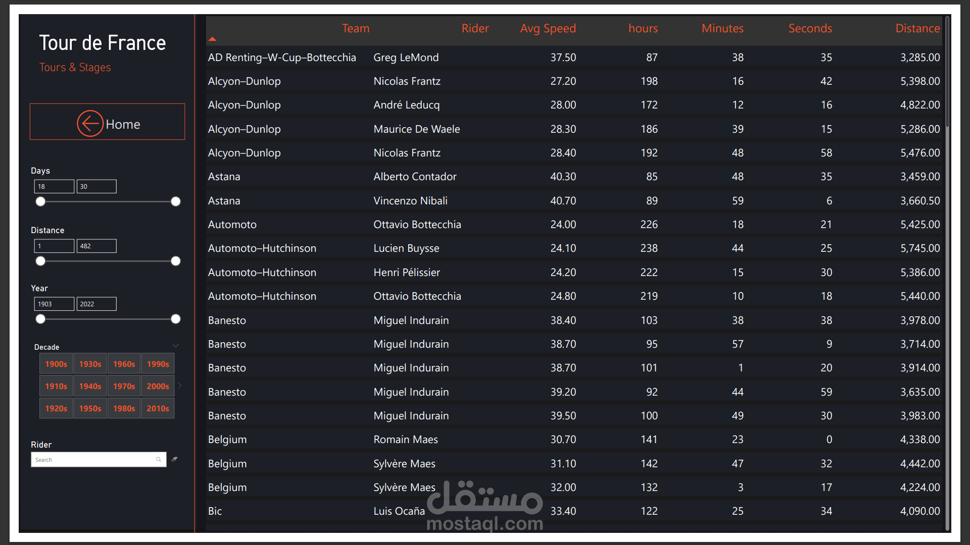 عرض عدد الجولات في كل عقد لمعرفة أن سباق فرنسا للدراجات قد بدأ منذ وقت طويل