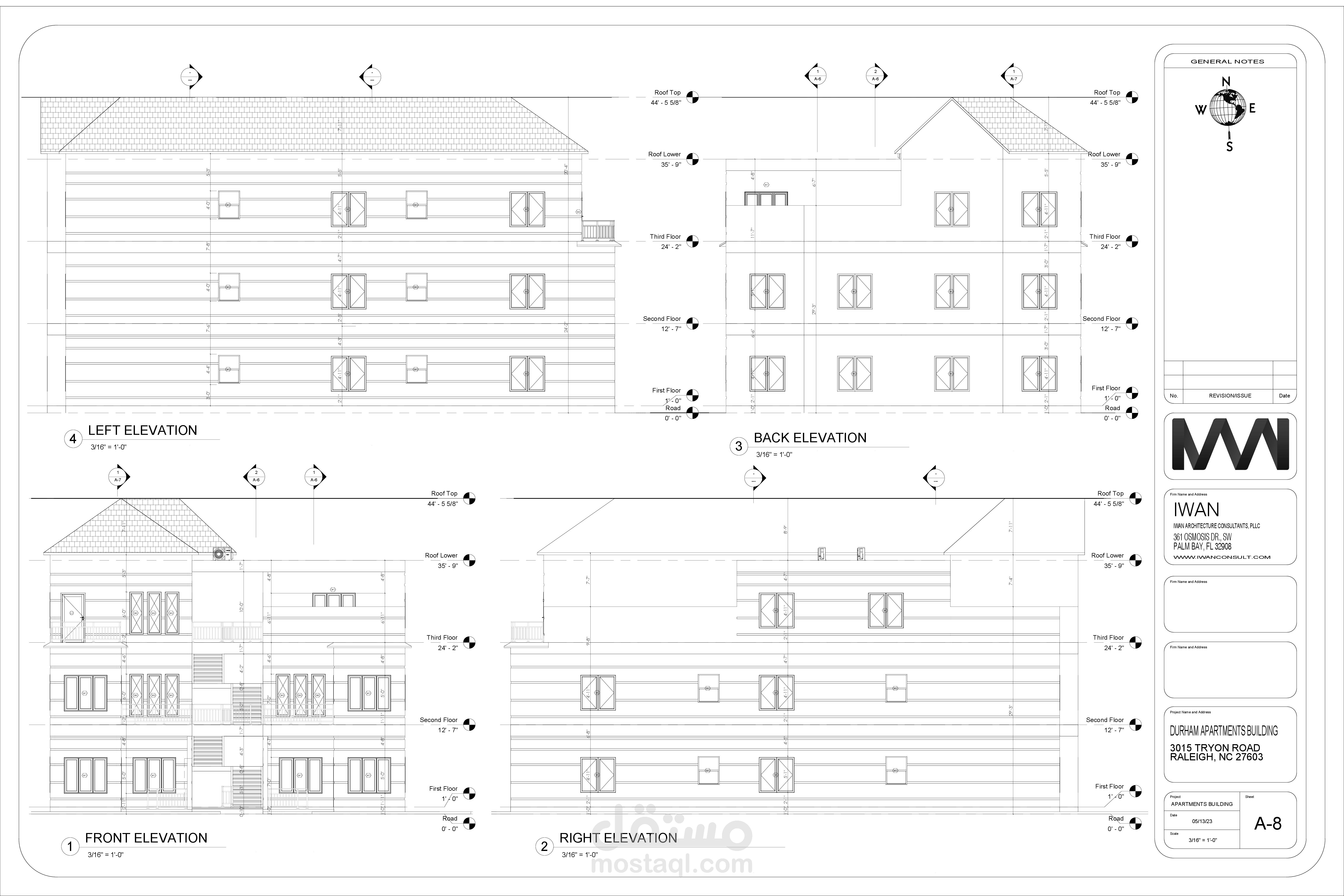 مخططات معمارية لمبني سكن طلاب بنظام بناء أمريكي من الخشب