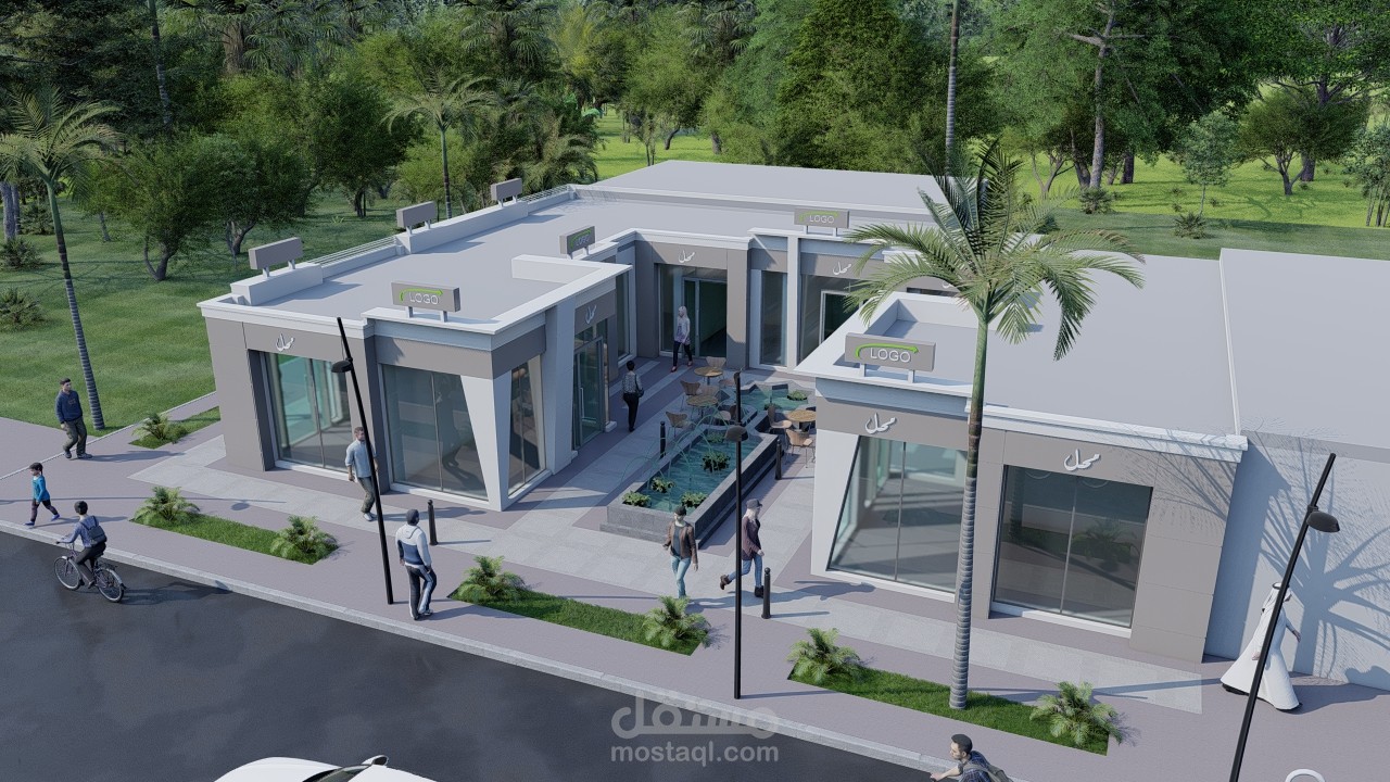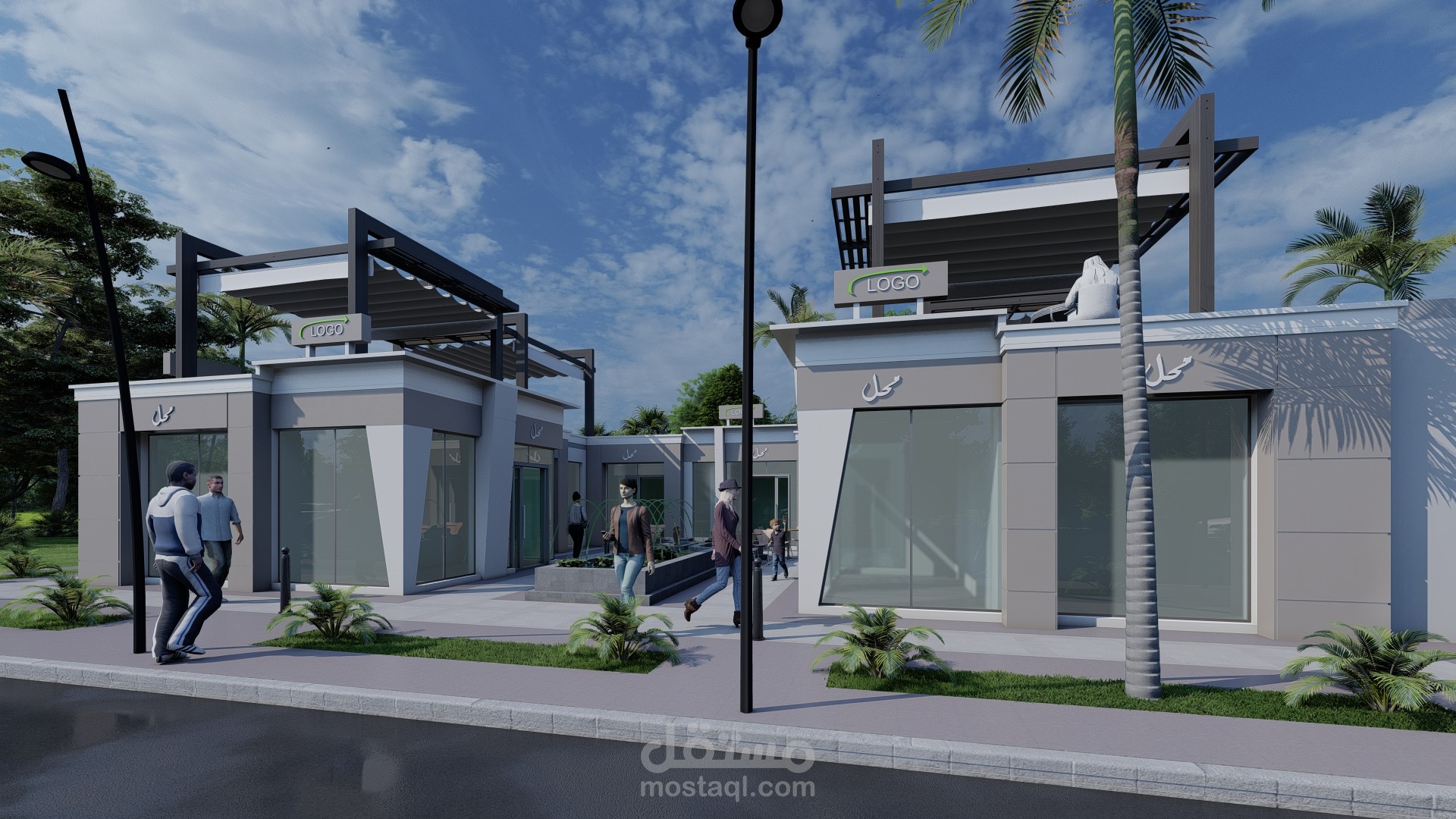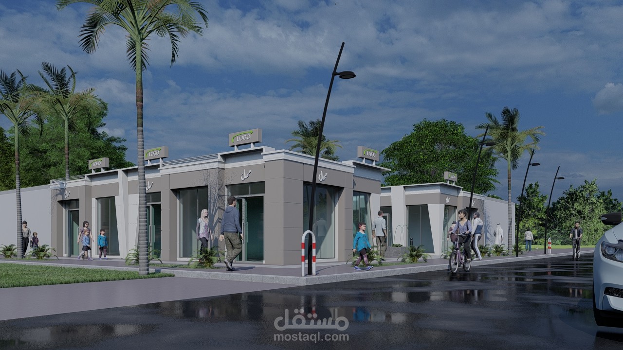 تصميم معماري لقطعة أرض نشاط تجاري طبقا لشروط البناء