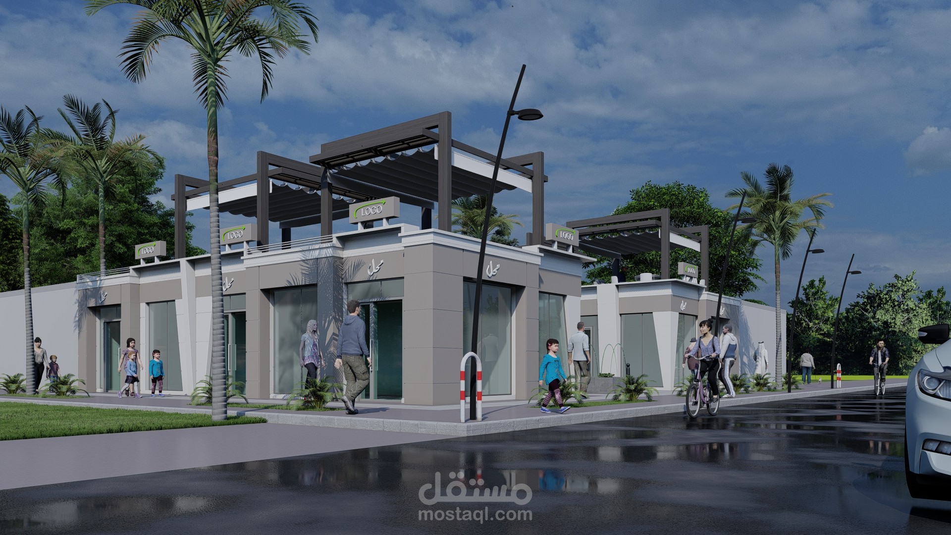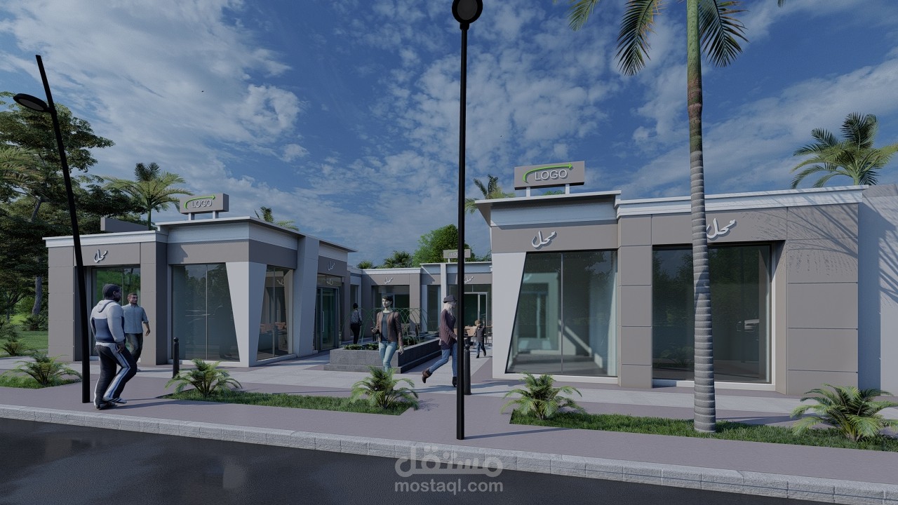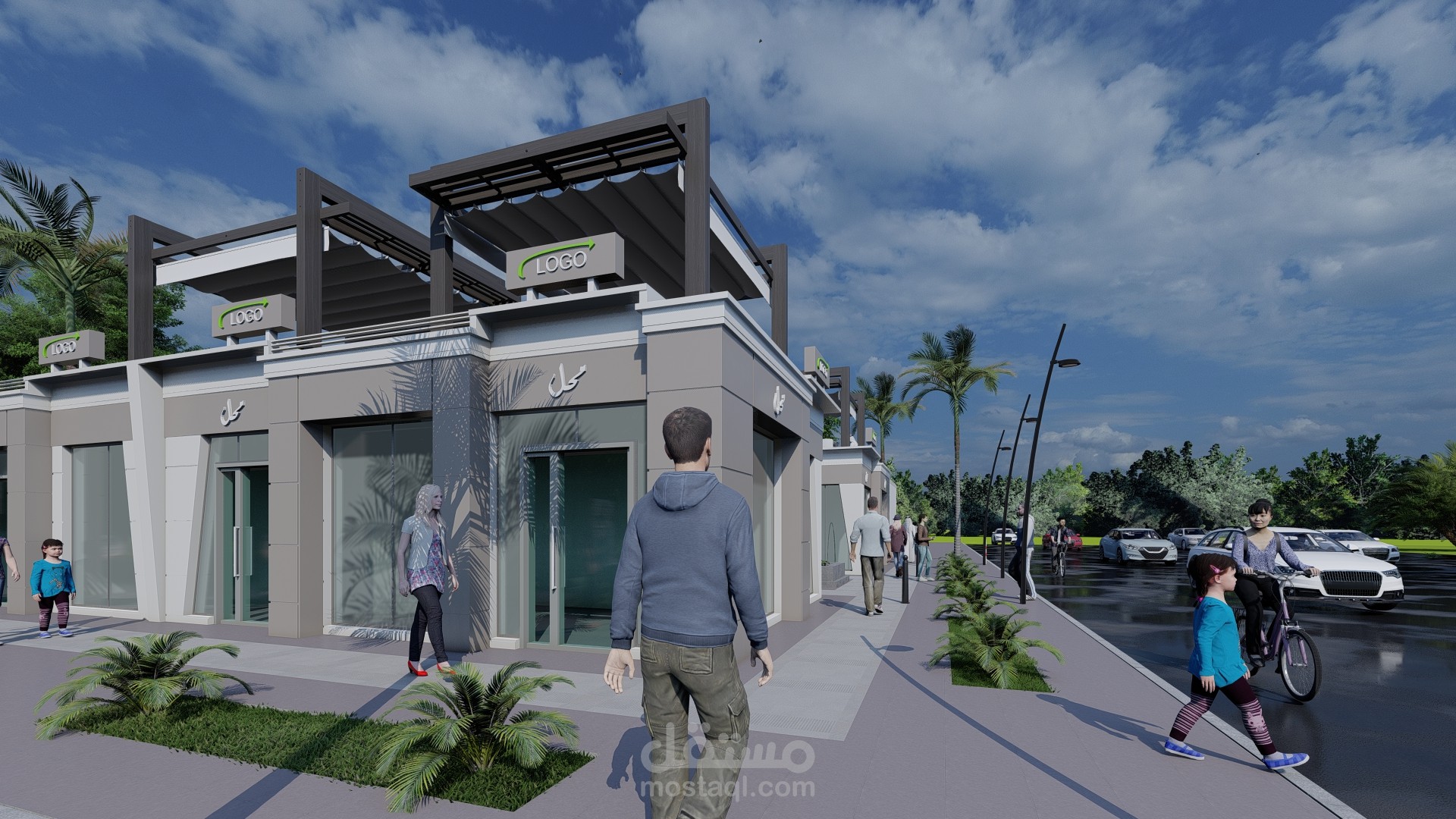 تصميم معماري لقطعة أرض نشاط تجاري طبقا لشروط البناء