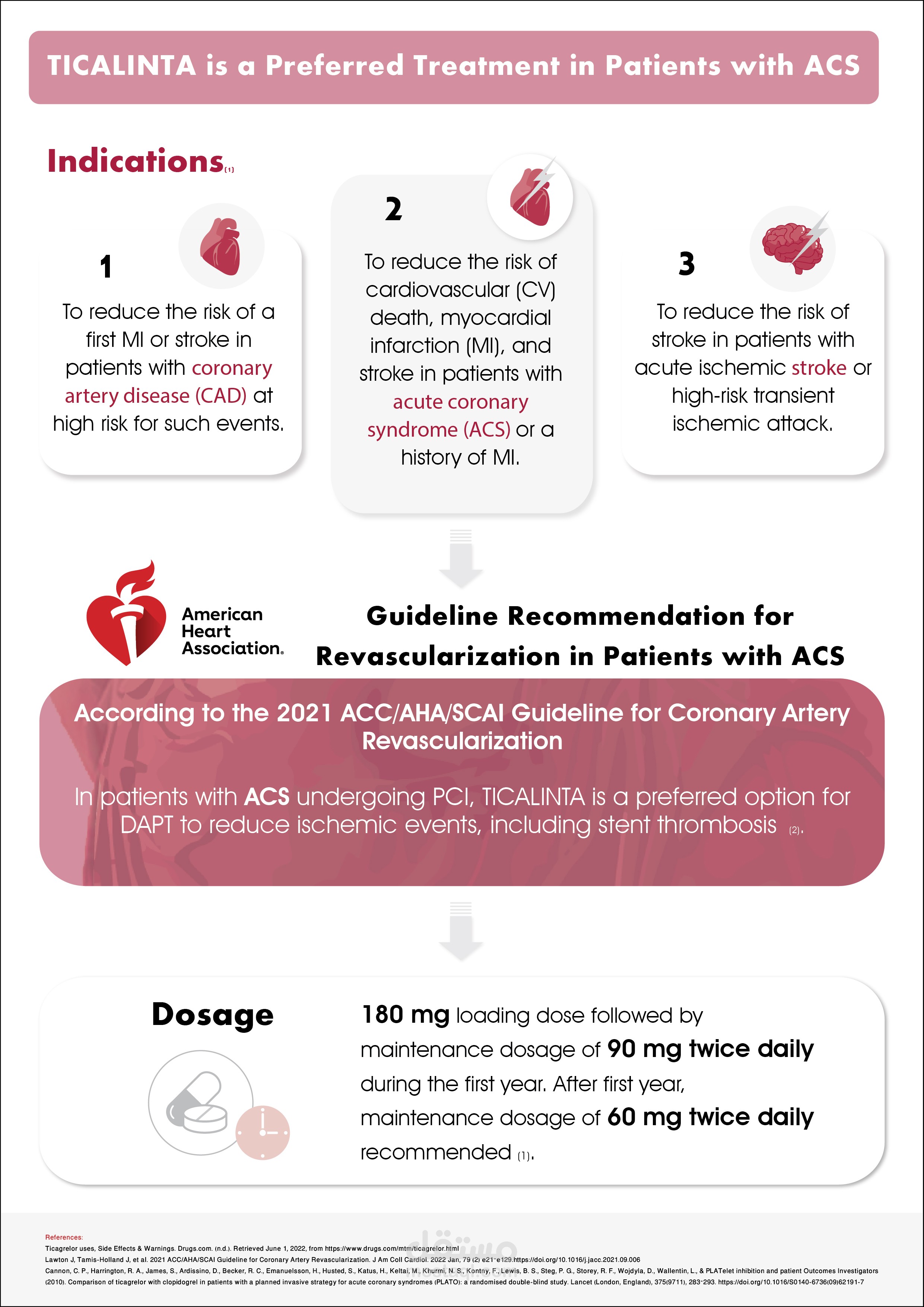 Ticalinta is a medication used for the prevention of stroke, heart attack and other events in people with acute coronary syndrome, meaning problems with blood supply in the coronary arteries.