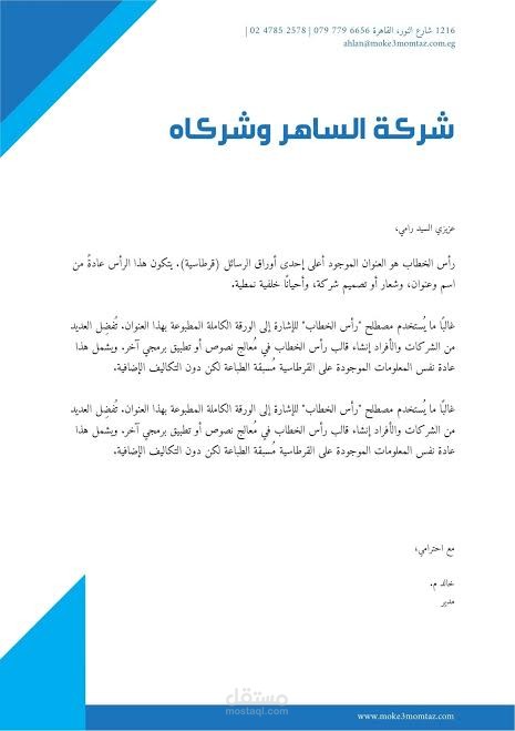 قمت بتنسيق الصفحة على اساس نوع العمل والتخصص ليتناسب مع طريقة تصميم الخطاب وتنسيقه وطريقة كتابته واسلوب كتابته