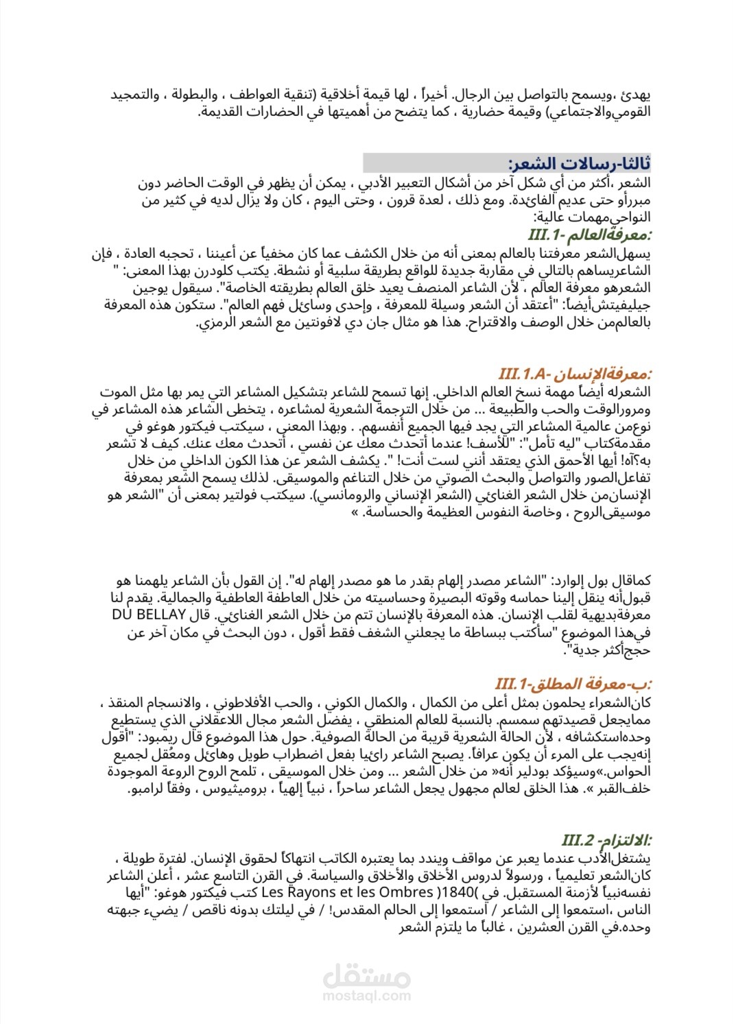 بحث بالفرنسية و ترجمته بالعربية عن الشِعر la poésie