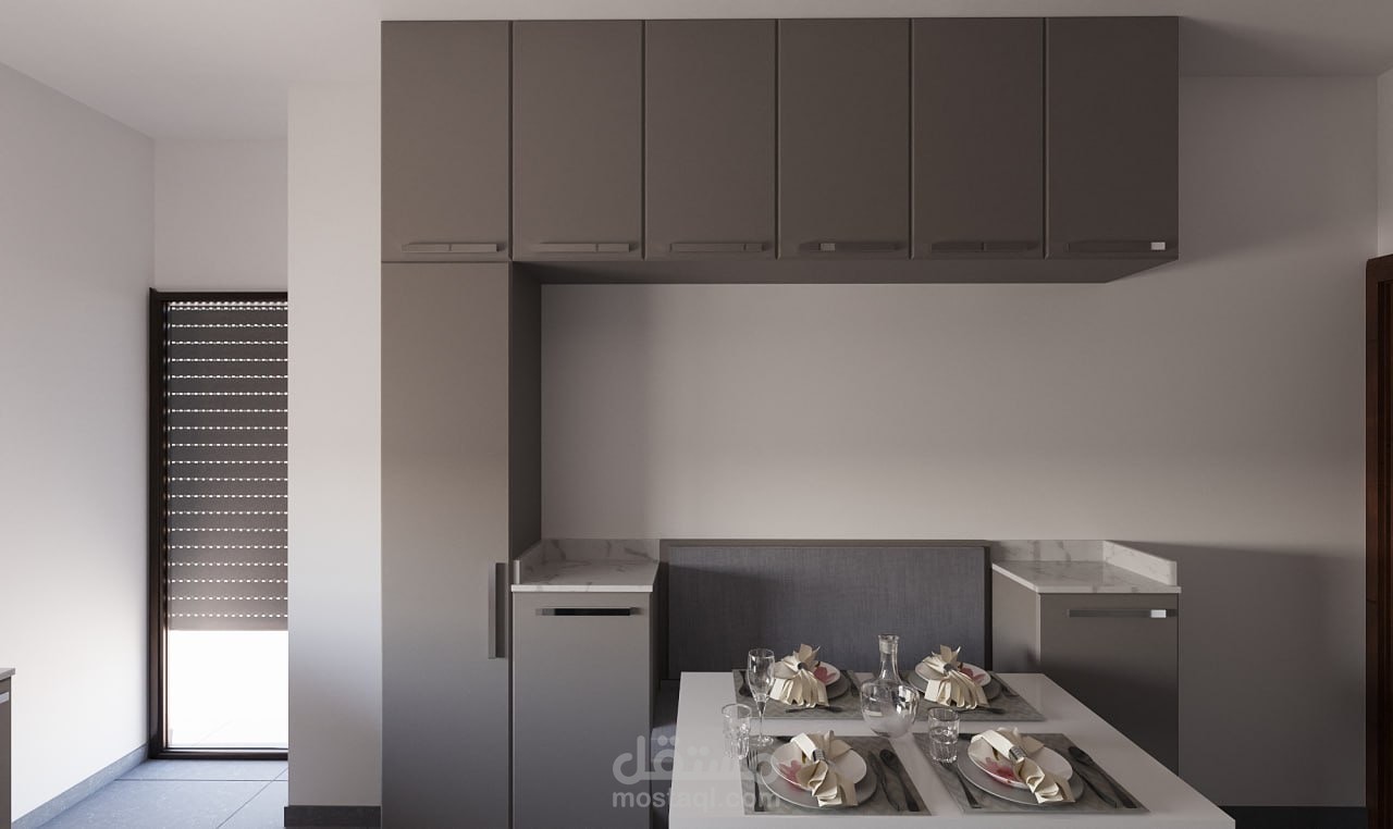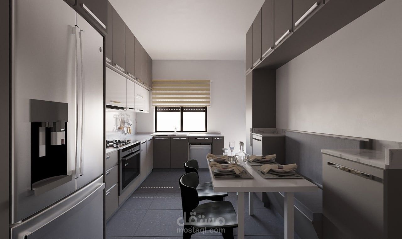 تم تصميم مطبخ مودرن بمساحة ٥٥ متر مربع