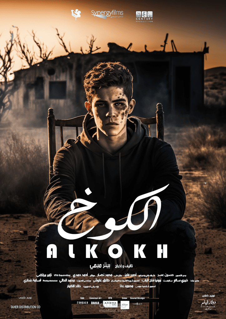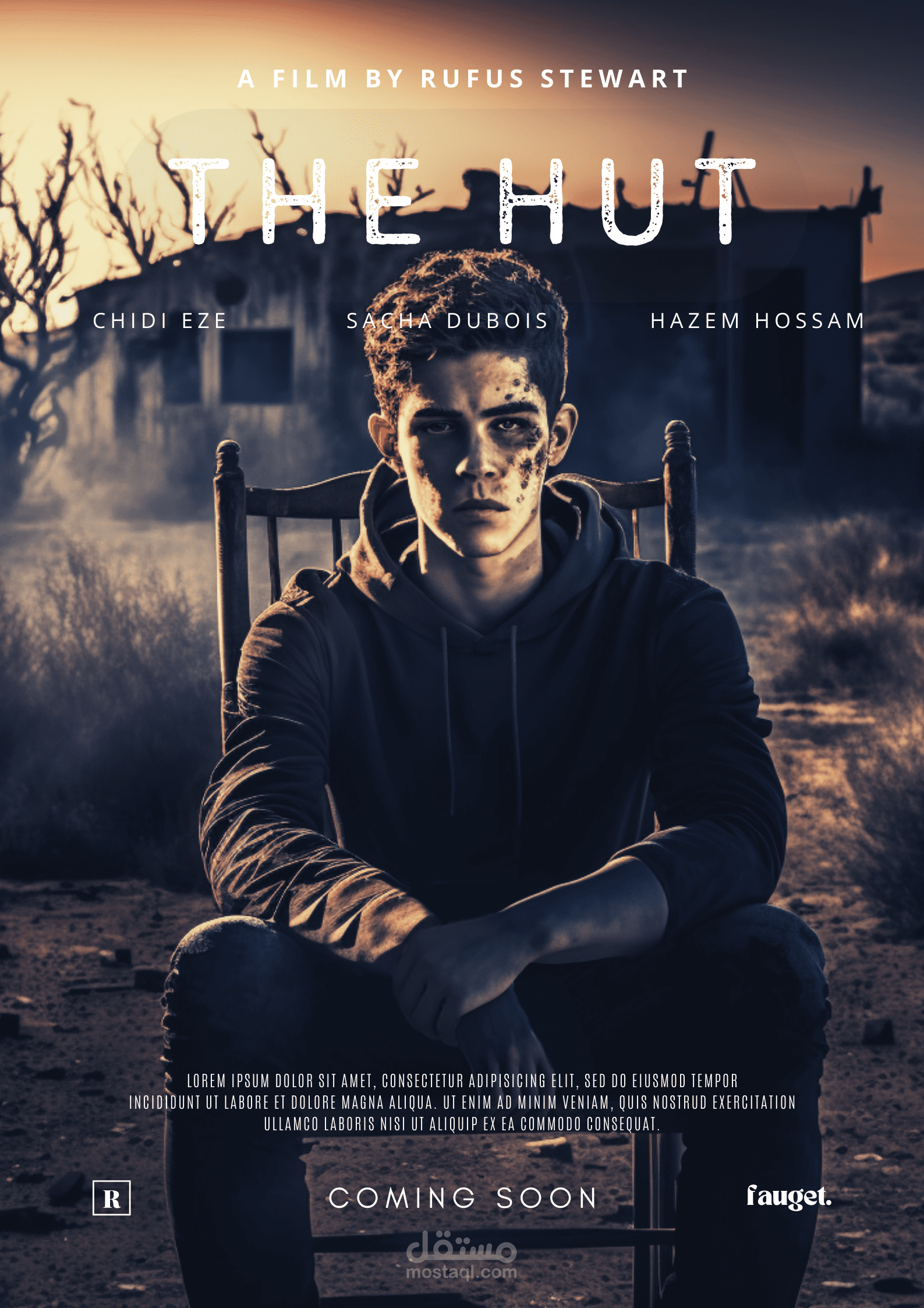 تصميم كامل لفيلم THE HUT وهو فيلم رعب .. تخيلت الجو المناسب للفيلم وقمت بتصميم تصميمين لنسختين مختلفتين واحدة بالانجليزية وواحدة بالعربية واسمها الكوخ وحاولت اضفاء فارق في التصميم بما يتناسب مع الاجواء الاجنبية والاجواء العربية