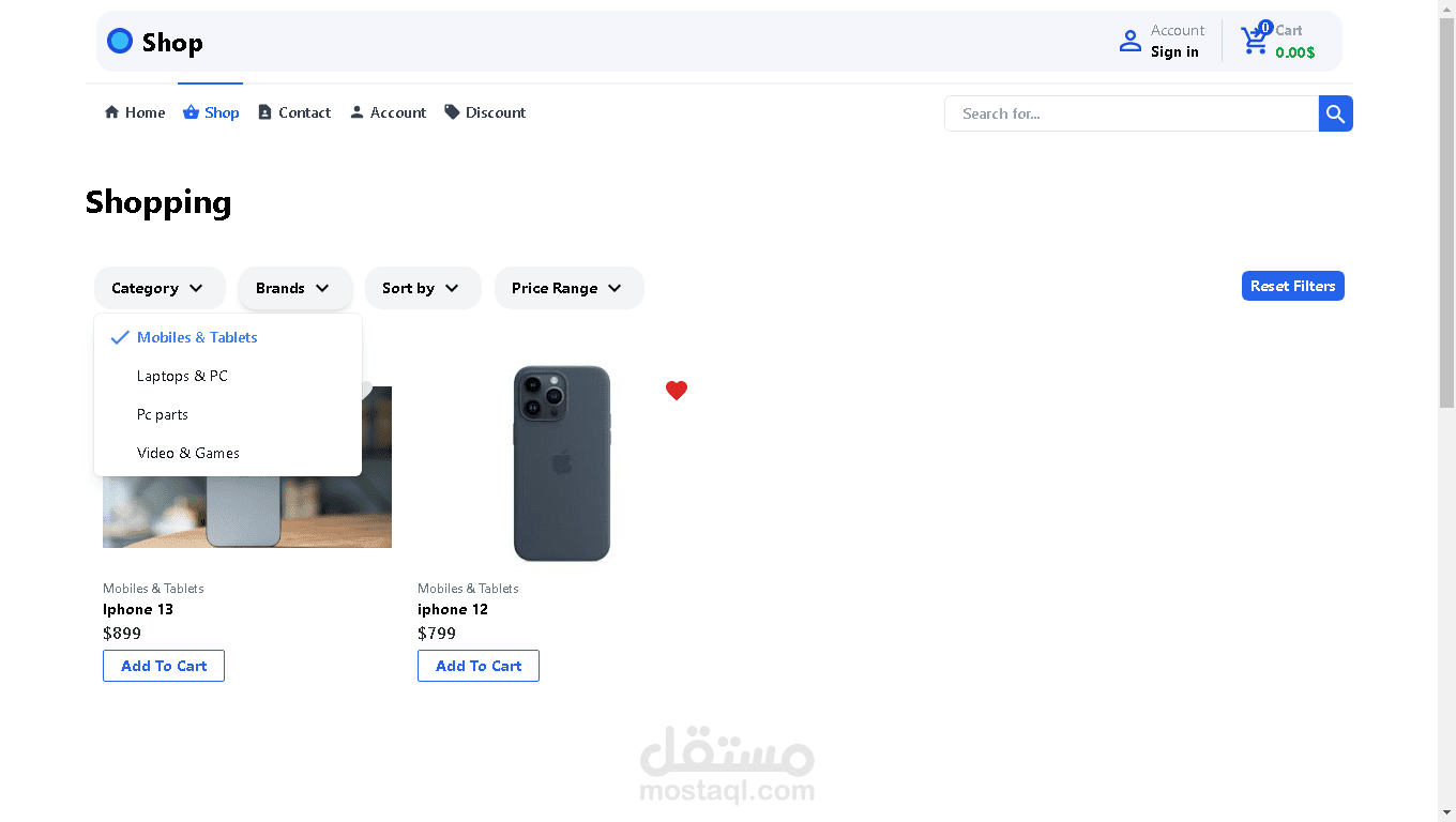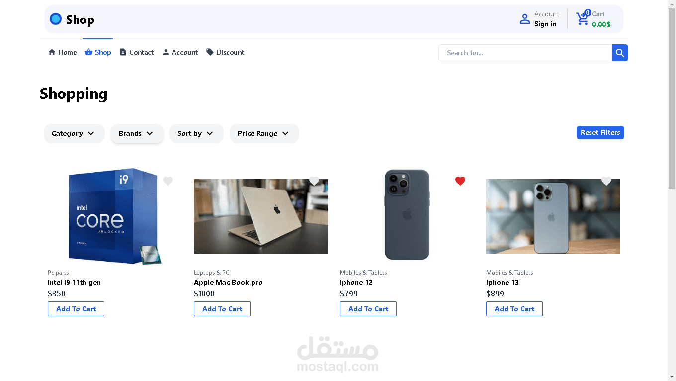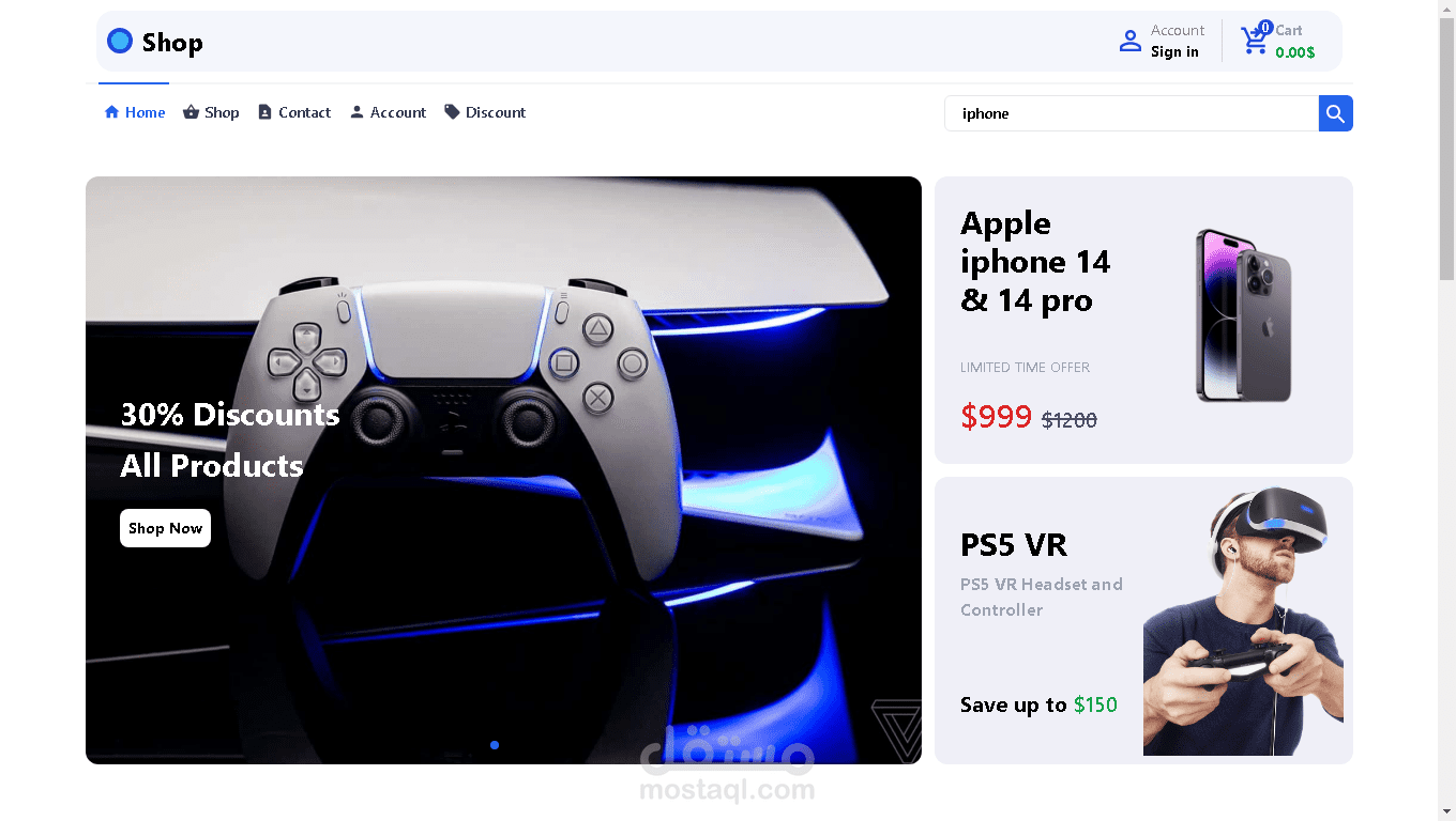هذا المشروع عبارة عن full-stack ecommerce website يحتوي على جميع خصائص المتجر الالكتروني من لوحة تحكم من اجل ادارة المحتوى الخاص بالمتجر و نظام تسجيل الدخول و تتبع الطلبيات و الكثير من الخصائص