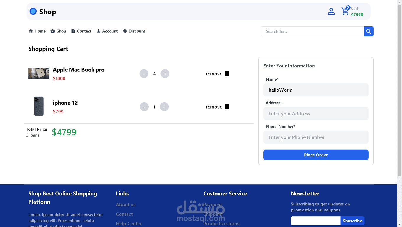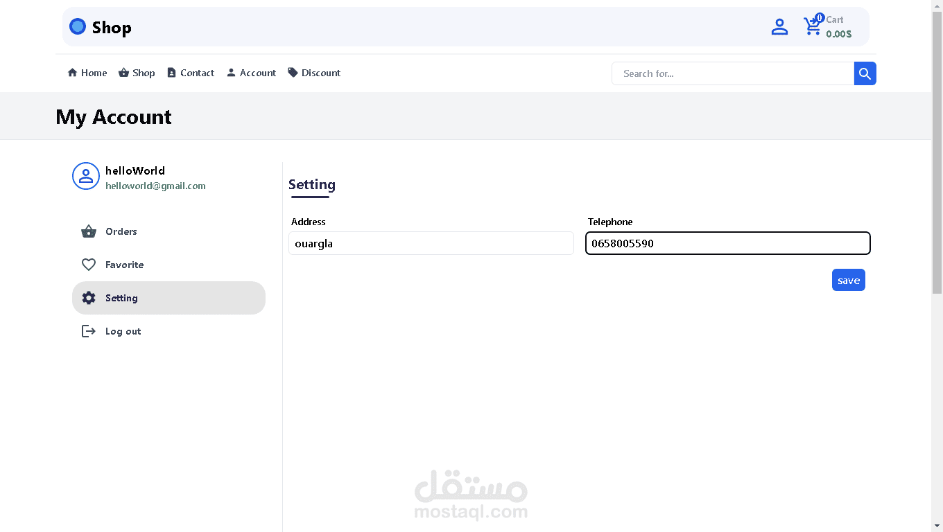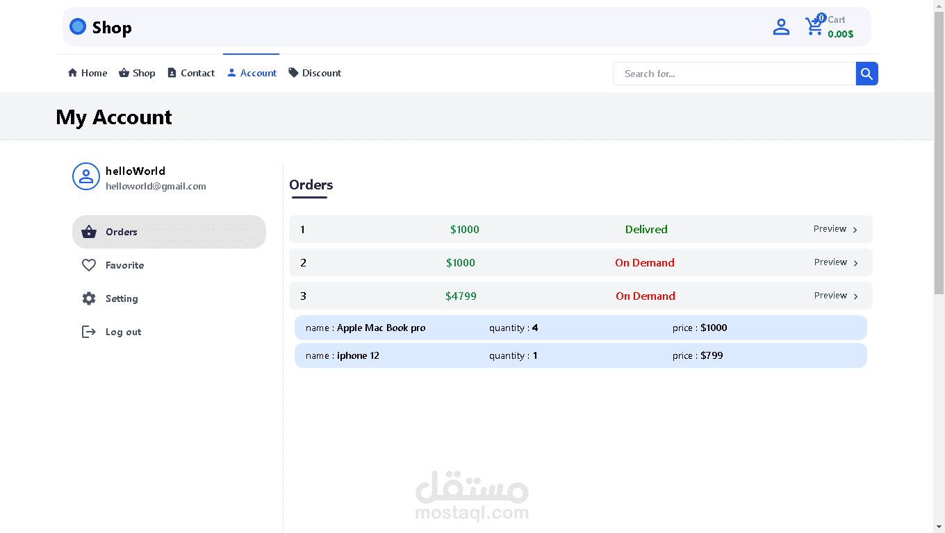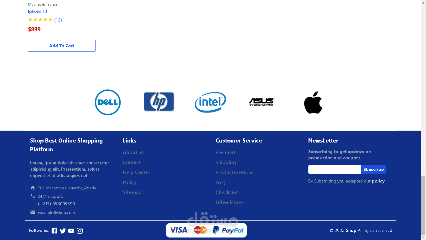 هذا المشروع عبارة عن full-stack ecommerce website يحتوي على جميع خصائص المتجر الالكتروني من لوحة تحكم من اجل ادارة المحتوى الخاص بالمتجر و نظام تسجيل الدخول و تتبع الطلبيات و الكثير من الخصائص