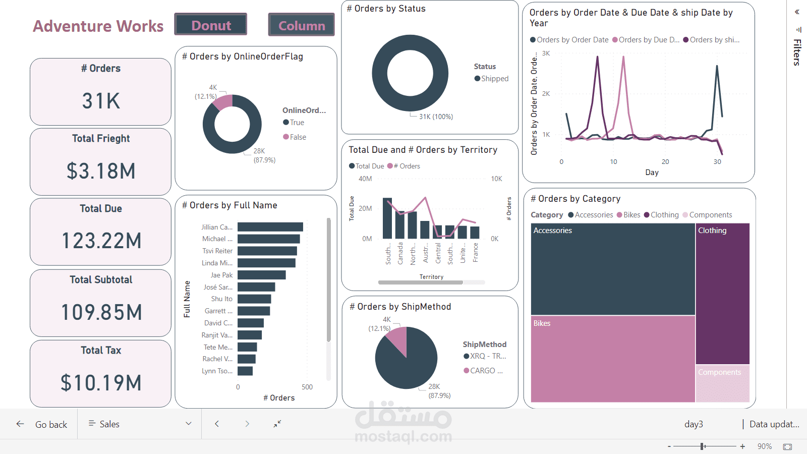 Using AdventureWorks database, this dashboard provides insights, interactive visualization and measures about sales such as