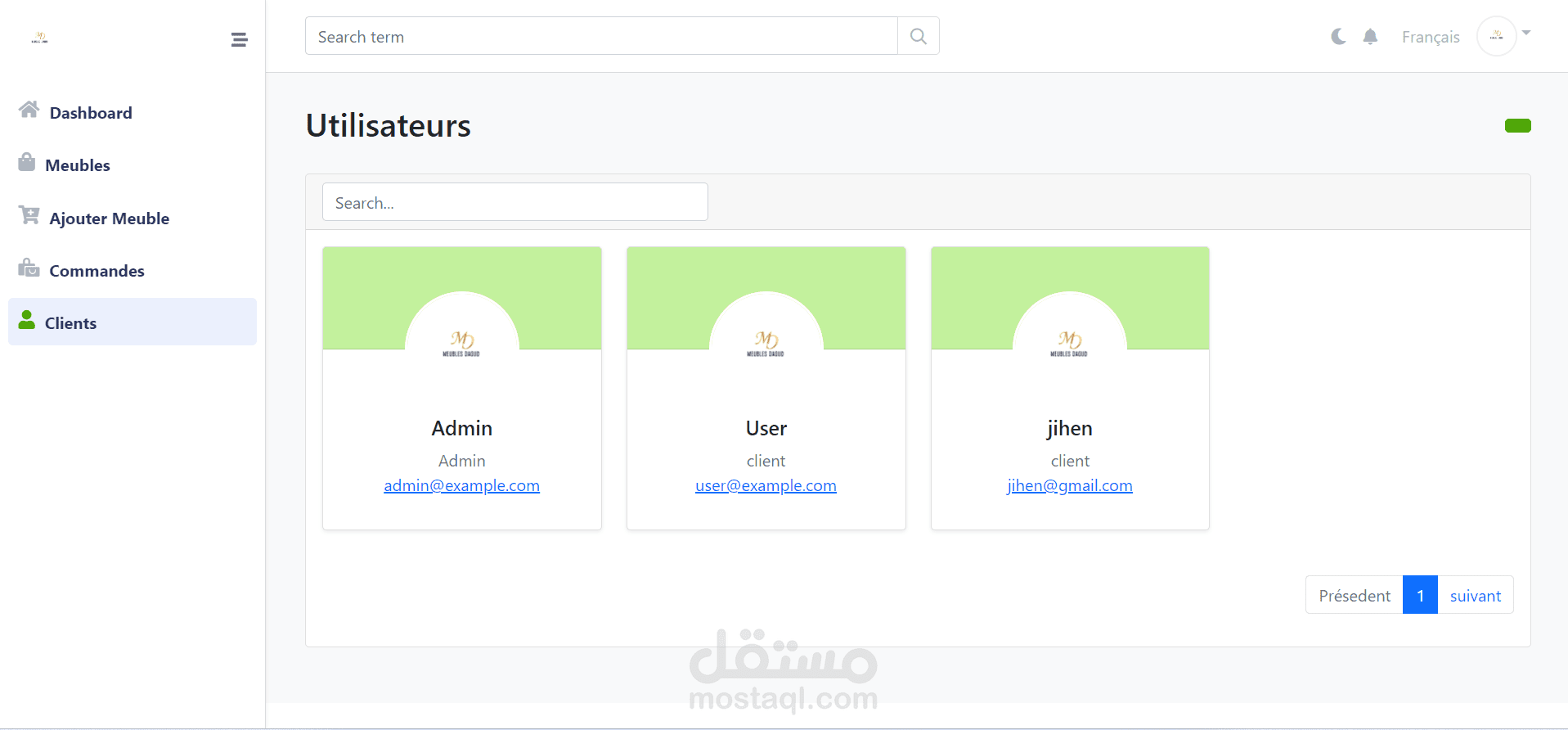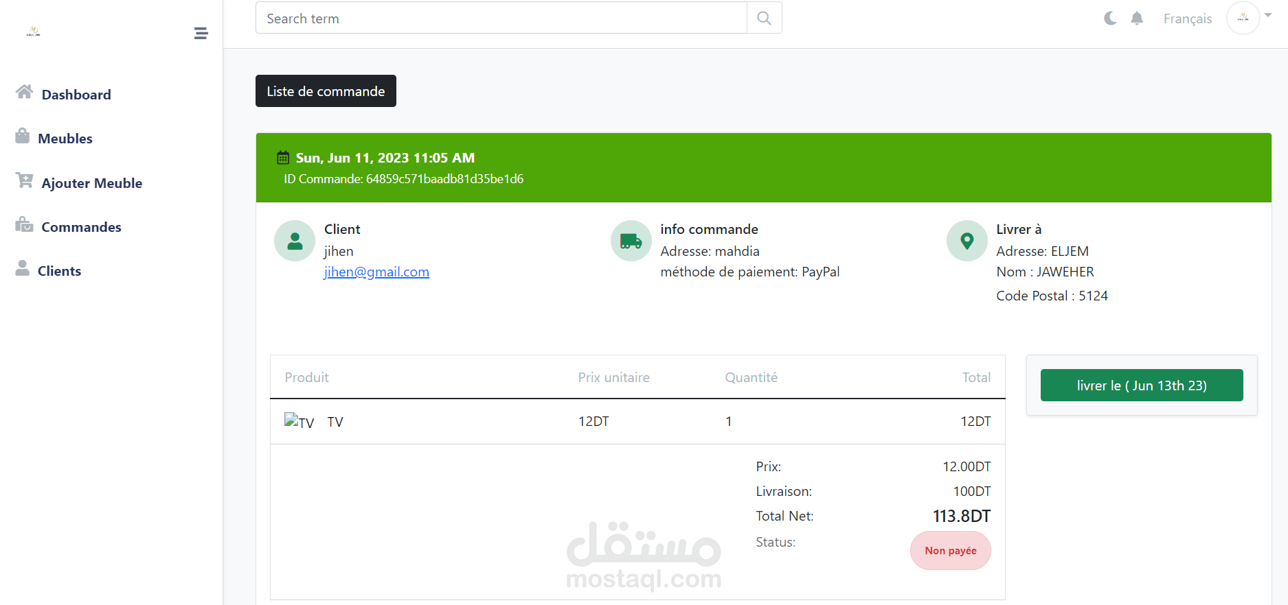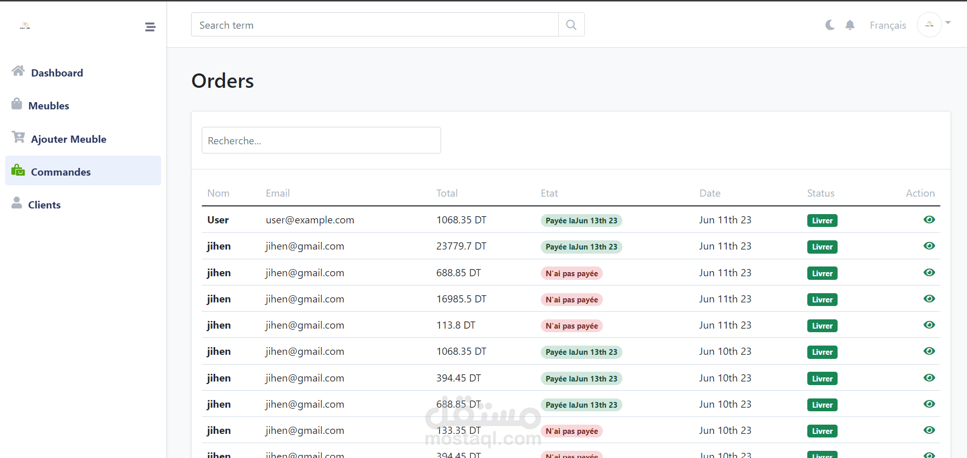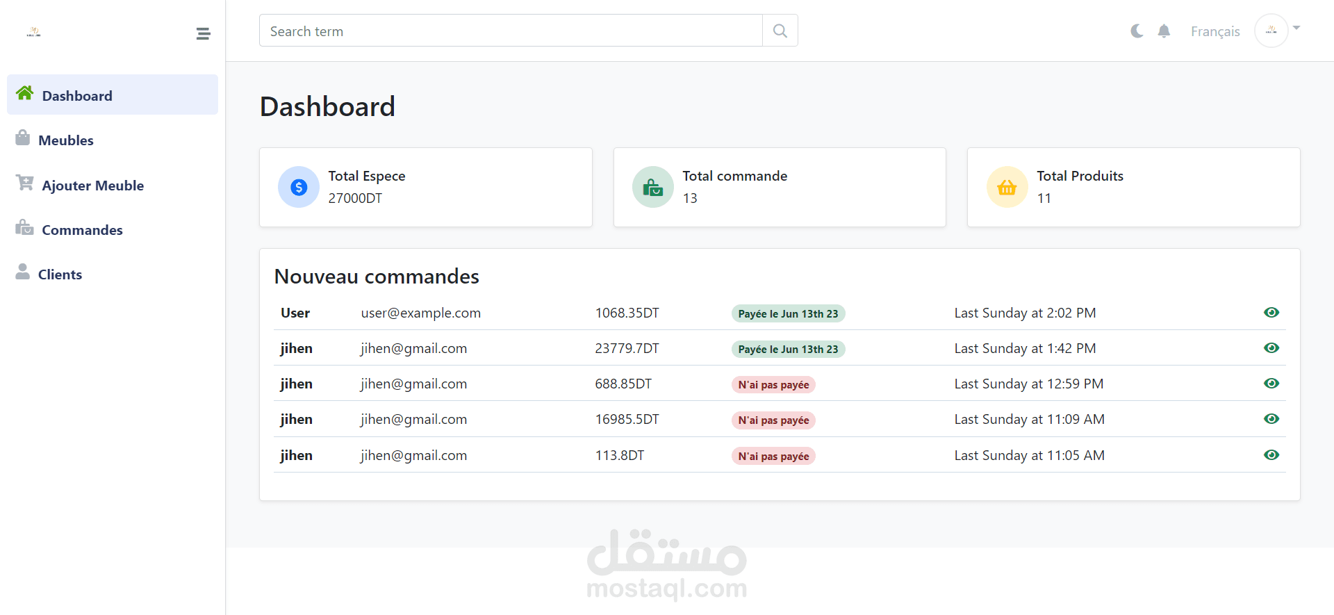 partie 1: espace admin il gére les commande les client et le produit avec des statstiquye